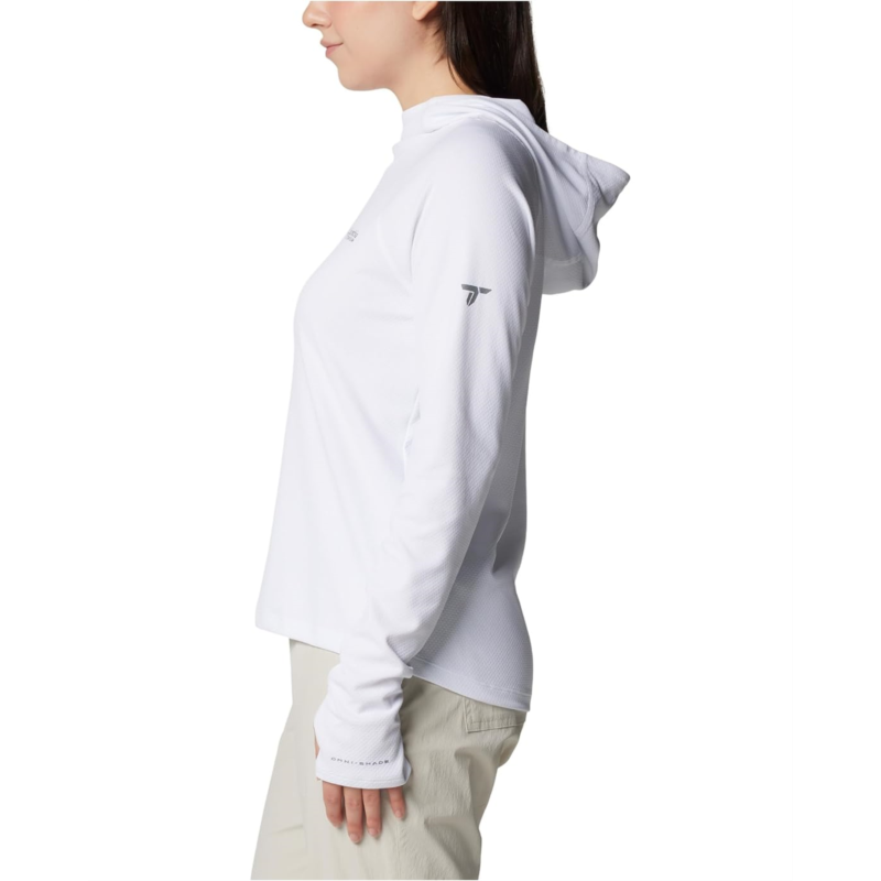 Look good and feel good as you head towards those hiking trails in the Columbia Summit Valley Hoodie which boasts a lightweight and breathable construction with Omni-Wick technology that wicks away perspiration from your skin and disperses it evenly on the fabric to give you a cool and comfortable feel. Integrated with the Omni-Shade technology, the hoodie protects your skin during outdoor activity by blocking harmful Ultraviolet A and Ultraviolet B rays (UVA and UVB). The attached hood and the long sleeves with thumbholes provide you with extra coverage and comfort.