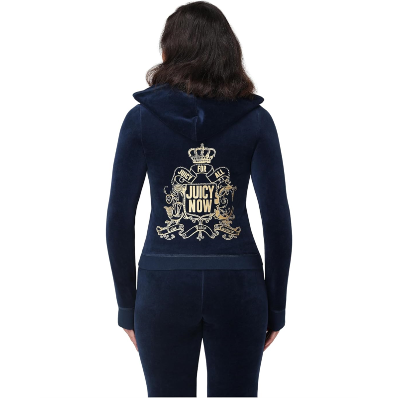 Step into iconic vibes with a modern twist, Juicy Couture brings back the glam in everyday comfort with the Heritage Rib Trim Kangaroo Pocket Track With Back. Designed to blend signature street style with cozy wearability, this track piece features a full zippered front closure for easy layering and a relaxed hooded neck that adds an effortless cool factor. The long sleeves and ribbed trim keep your look sharp while ensuring all-day comfort, while the roomy kangaroo pocket delivers both function and laid-back flair. A standout detail, the brand name shines boldly across the chest, showcasing Juicy''s signature heritage style.