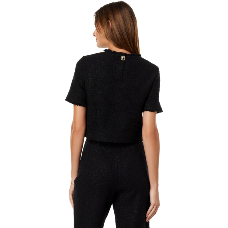 Featuring a crew neckline and short sleeves, the Ted Baker Katyyj Woven Tee with Welt Pockets come with a pull-on style. Adding to its flair, this top comes with a simple and elegant design. It is intended to hit at the waist.
