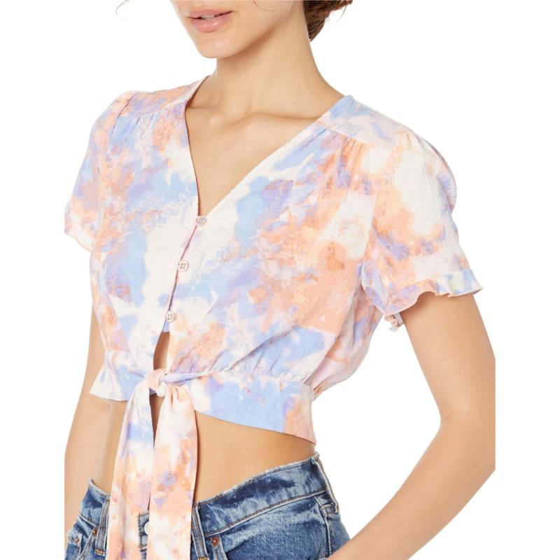 BCBGeneration Short Sleeve Tie Front Button Top V1VX1T18