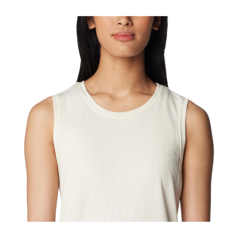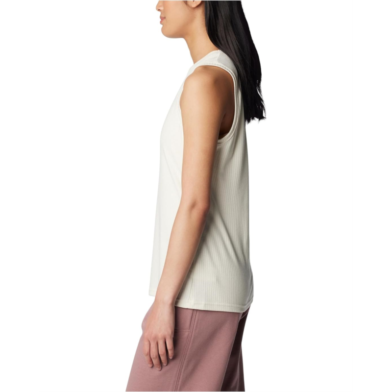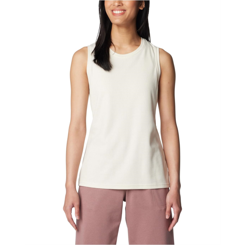 Exhibit stylish athletic look donning the Columbia Crystal Pine Tank is crafted from comfortable and stretchable fabric This top features band detailing on the neckline and armholes, allover ribbed design, and straight hemline.
