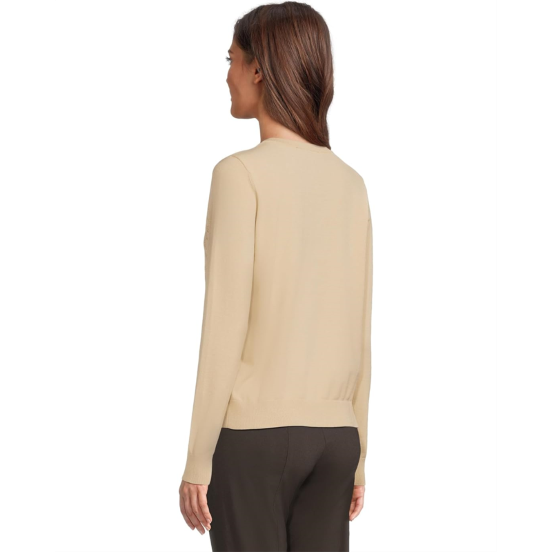 Add a little shine to your classic looks in the Elliott Lauren Pop Top - Long Sleeve V-Neck Sweater with Crystals detail. This pull-on style sweater offers a V-neckline, long sleeves, geometric design on front with crystal detailing, and a straight hemline.