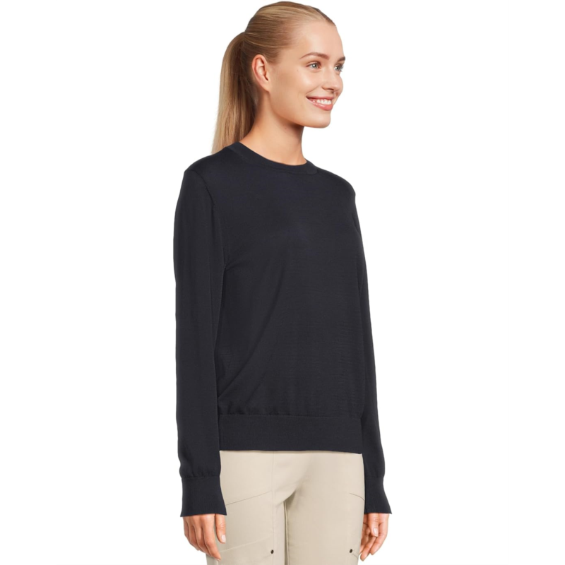 Looking for the perfect go-to sweater? Look no further than the Elliott Lauren Cotton Charm sweater. With its crew neckline, long sleeves, and straight hem, this sweater is both stylish and comfortable. The ribbed collar, cuffs, and hem add a classic touch that will elevate any outfit. A versatile piece that can be dressed up or down with ease.