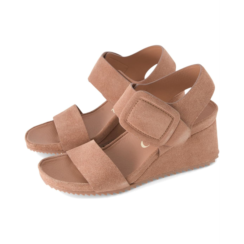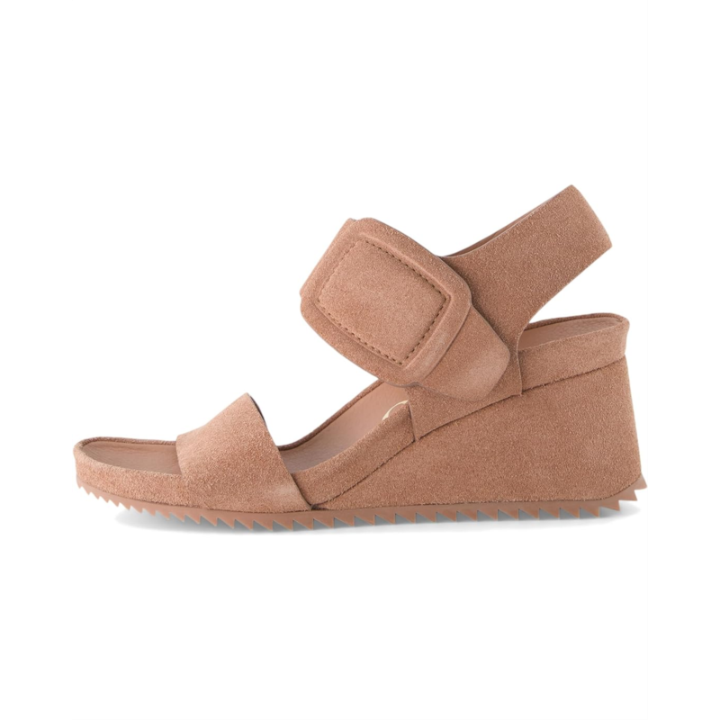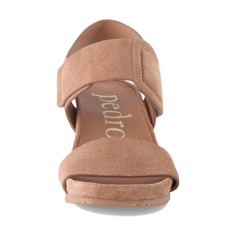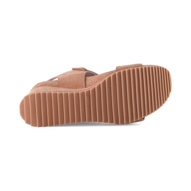 Step out with ultimate ease and flair wearing the water-resistant Pedro Garcia Cova Sandals. The wedge heel footwear features leather upper with suede faux buckle adornment and open almond toe silhouette.