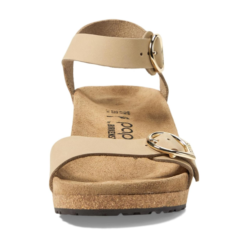The Soley brings the contoured comforts of the BIRKENSTOCK footbed together with a cork wedge-all without adding pressure to the front of your foot. In softly brushed nubuck leather that comes together with elegant, rounded buckles. Level up in comfort.