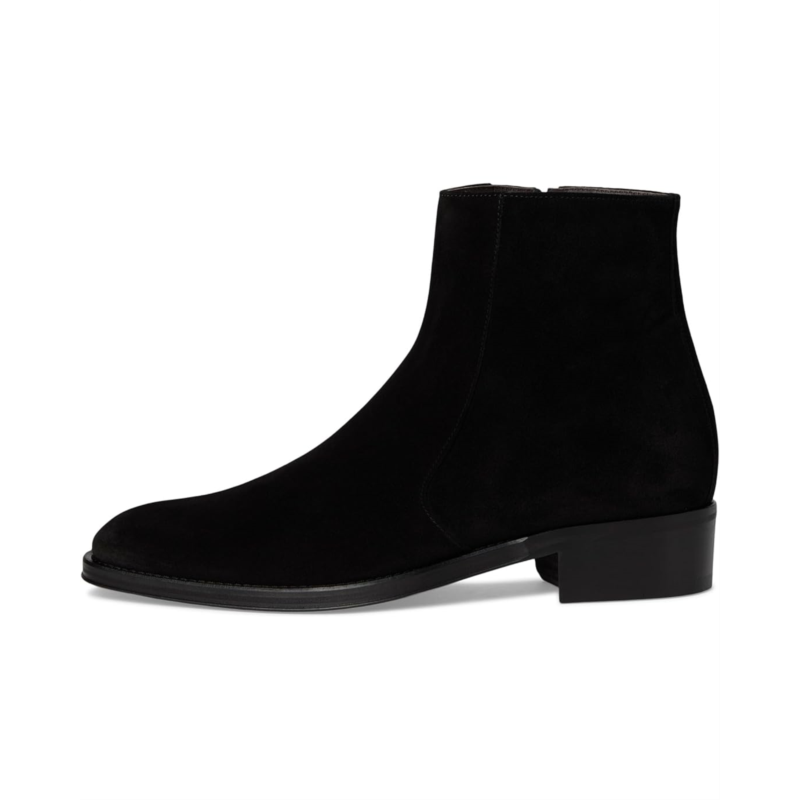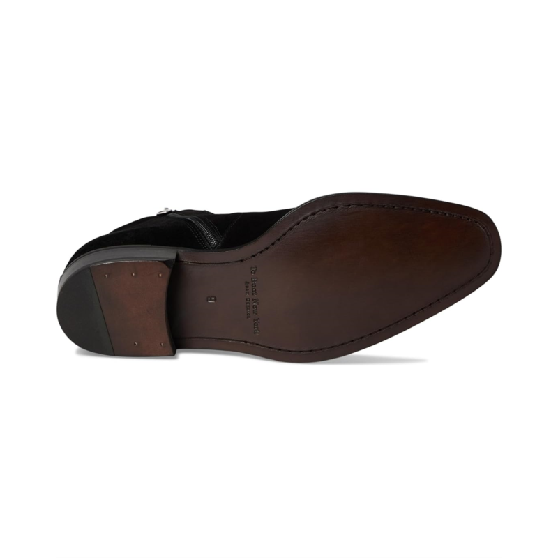 - Dress side zip boot with full leather sole and stacked leather heel. Constructed with a leather upper, these boots offer an almond toe silhouette with leather lining and insole and a block heel.