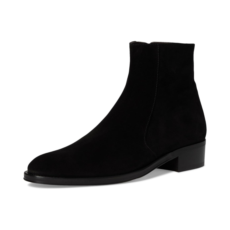 - Dress side zip boot with full leather sole and stacked leather heel. Constructed with a leather upper, these boots offer an almond toe silhouette with leather lining and insole and a block heel.