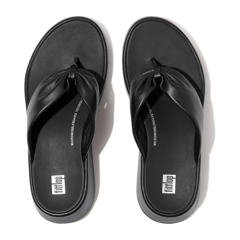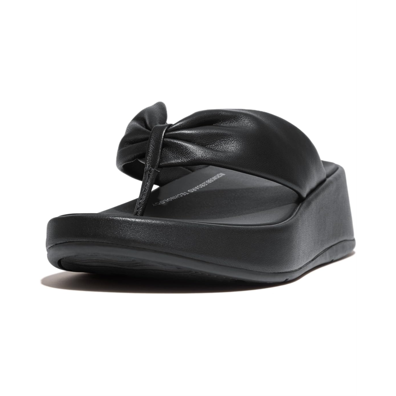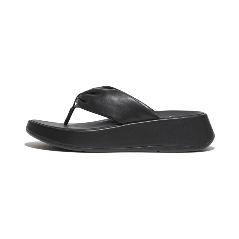[US] FitFlop F-Mode Leather-Twist Flatform Toe-Post Sandals
