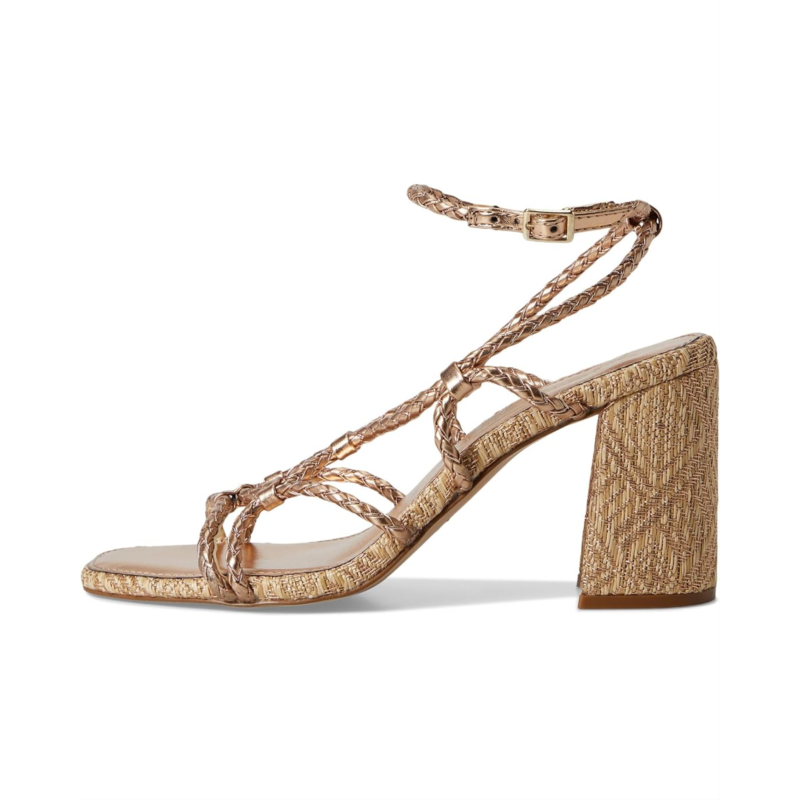 Turn heads, steal hearts, and shine brighter wearing Jessica Simpson Azimma Braided Block Heel Sandals. Crafted with a luxe faux leather upper, these sandals feature a PU lining for all-day comfort, a soft cork insole that supports every step, and a durable rubber outsole made to move. The sturdy block heel adds height without sacrificing ease, while the buckle ankle strap keeps you secure from cocktail hour to the dance floor. An open-toe, strappy silhouette makes it the ultimate choice for weddings, girls'' night out, or just a little sparkle on a casual day.