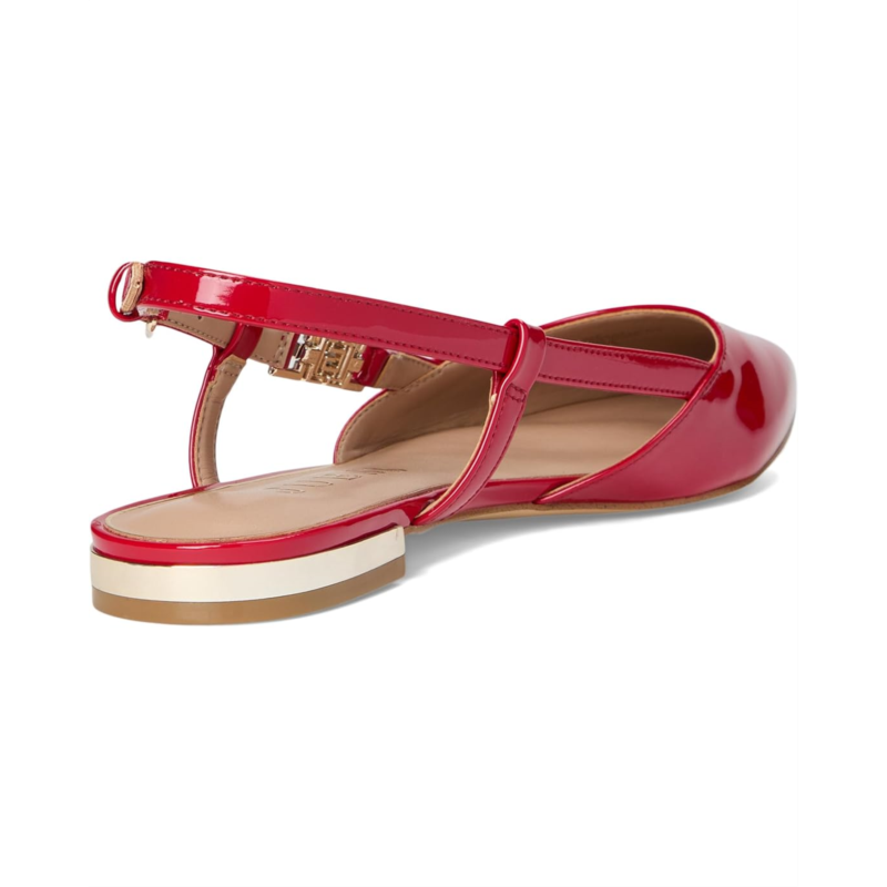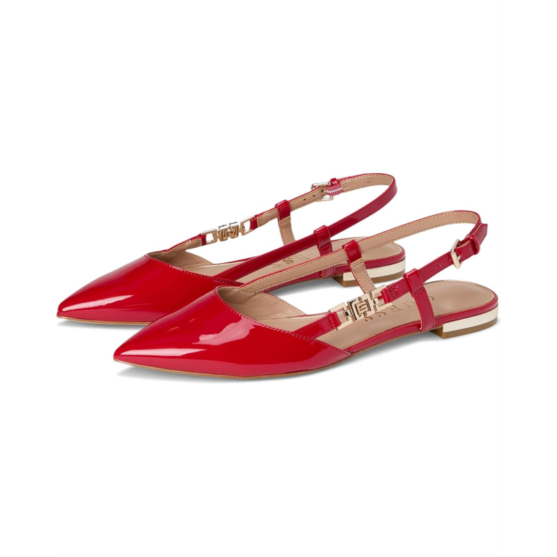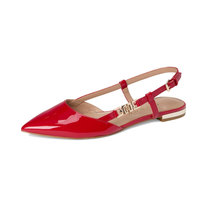 Sophisticate any look wearing the GUESS Gwfranie shoes. These classic pointed-toe-shaped shoes are accented with G Elite hardware. They are made of a rubber upper, cushioned insole, and synthetic rubber lining. The slingback strap of these flat shoes features a buckle closure. These slip-on shoes go with everything.