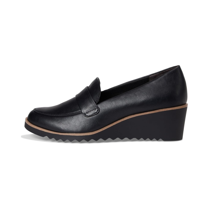 Slip into perfectly elevated and tailored style wearing these comfortable LifeStride Zed 2 Loafer/Moc Shoes. The wedge heels feature faux leather upper with a round toe design, slip-on fit, decorative strap, tread sole, and lightweight and flexible design. Trusted Soft System comfort technology for unmatched cushion, support, and flexibility in every pair. Shock absorption with pressure distribution and superior cushioning for an effortless feel.