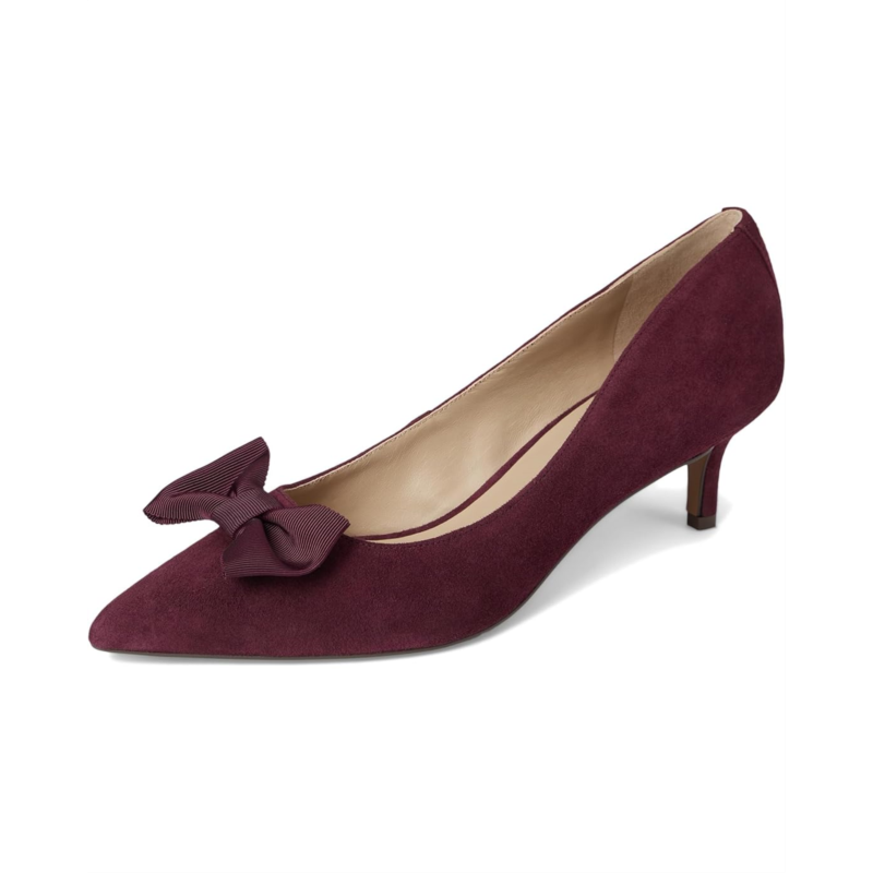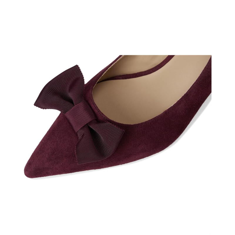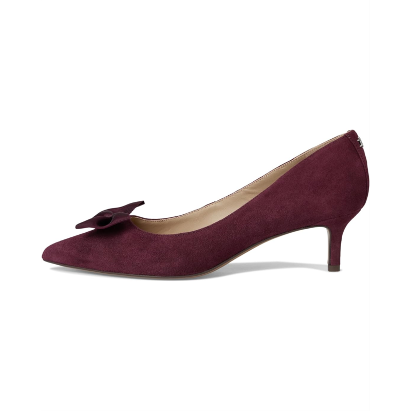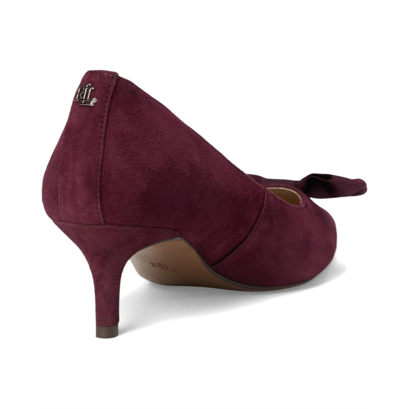 Lauren Ralph Lauren Adrienne Bow-Trim Suede Pumps bring sophistication and charm to every stride. Crafted from velvety suede, these pumps feature an ultrafeminine grosgrain bow at the vamp, instantly elevating your look with a touch of romance. The sleek leather upper and lining exude refinement, while the foam-padded insole provides all-day comfort you''ll love. Designed with a graceful kitten heel, these slip-on pumps offer just the right lift for effortless style without sacrificing ease. The durable leather outsole ensures stability and lasting wear, making them a versatile addition to your wardrobe. Finished with the signature ''LRL'' logo at the back, this pair embodies understated luxury with every detail.