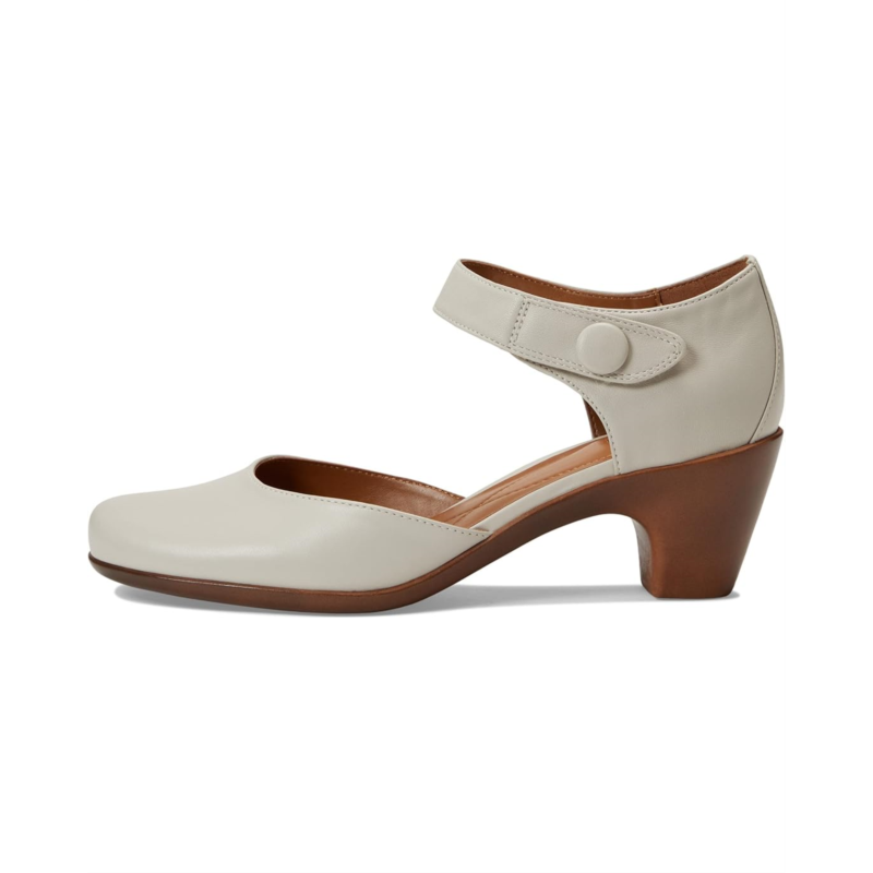 The Easy Spirit Clarice closed-toe pump boasts a smooth and sleek leather upper that adds sophistication while an adjustable hook-and-loop fastener at ankle offers an easy on-and-off.