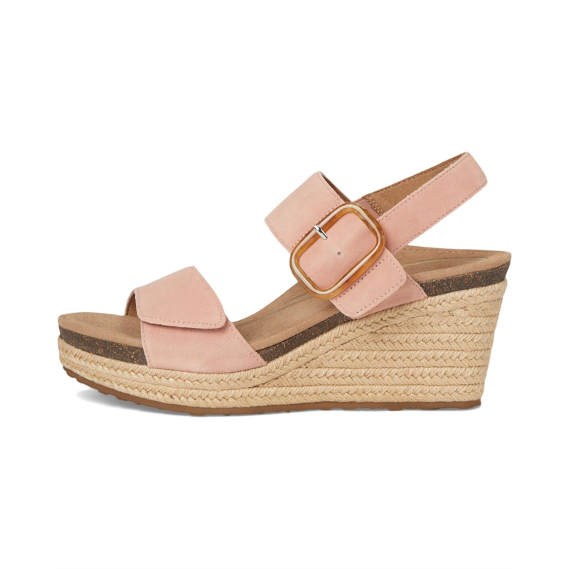 Crafted from suede upper, the Aetrex Ashley features wedge heel, open round toe, and arch support that helps to stabilize your body, align your feet and relieve common foot pain. These sandals are super stylish and comfortable. It comes with wide straps, buckled closure, and brand detailing on the footbed.