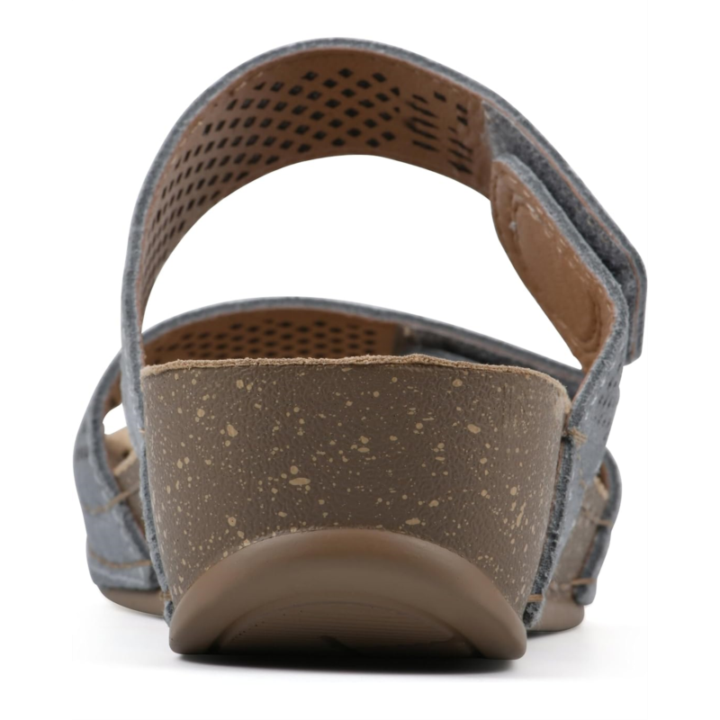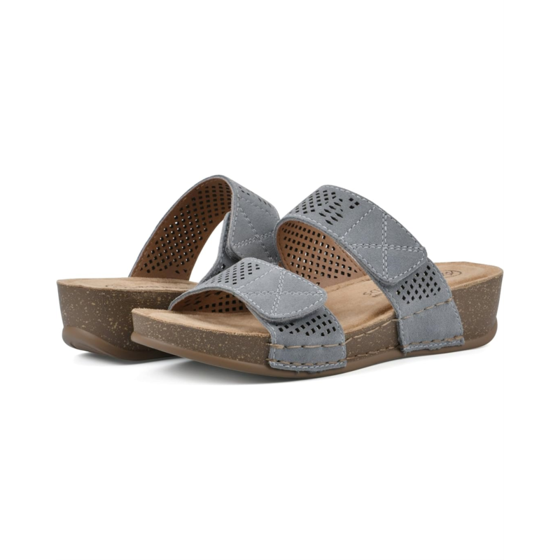 Make a statement in your spectacular fashion tempo wearing the White Mountain Ferula Sandals. The slip-on footwear features breathable leather upper straps with perforated design and low wedge heels.