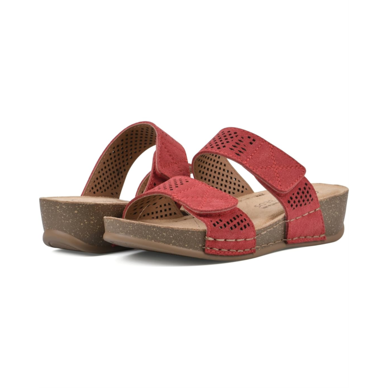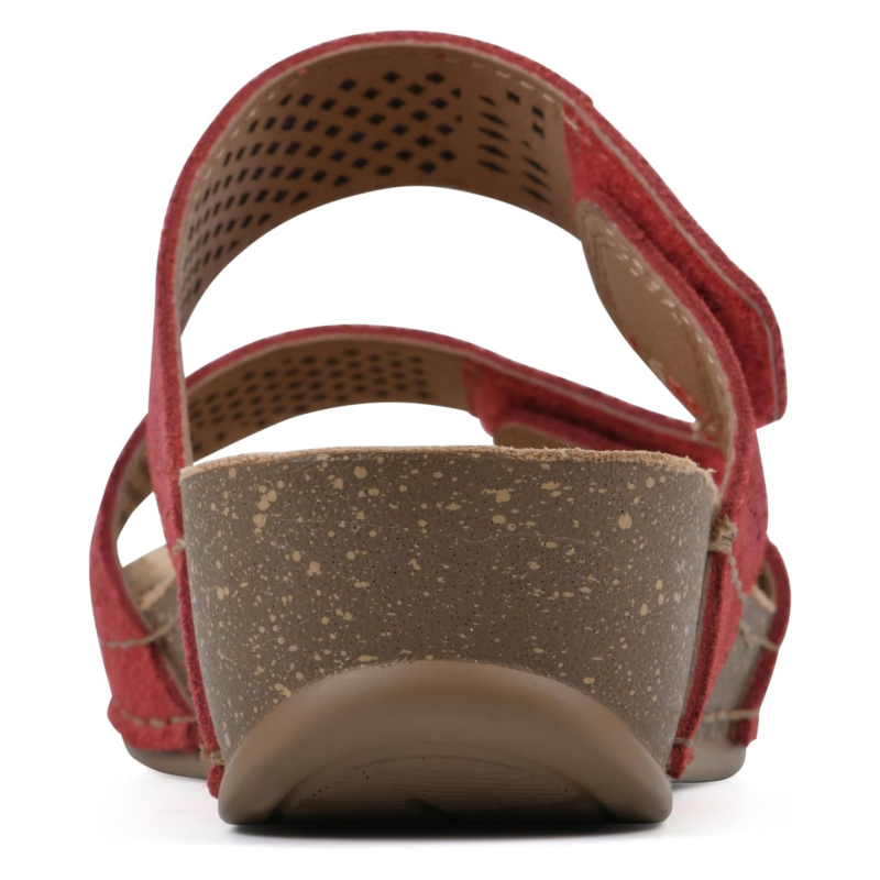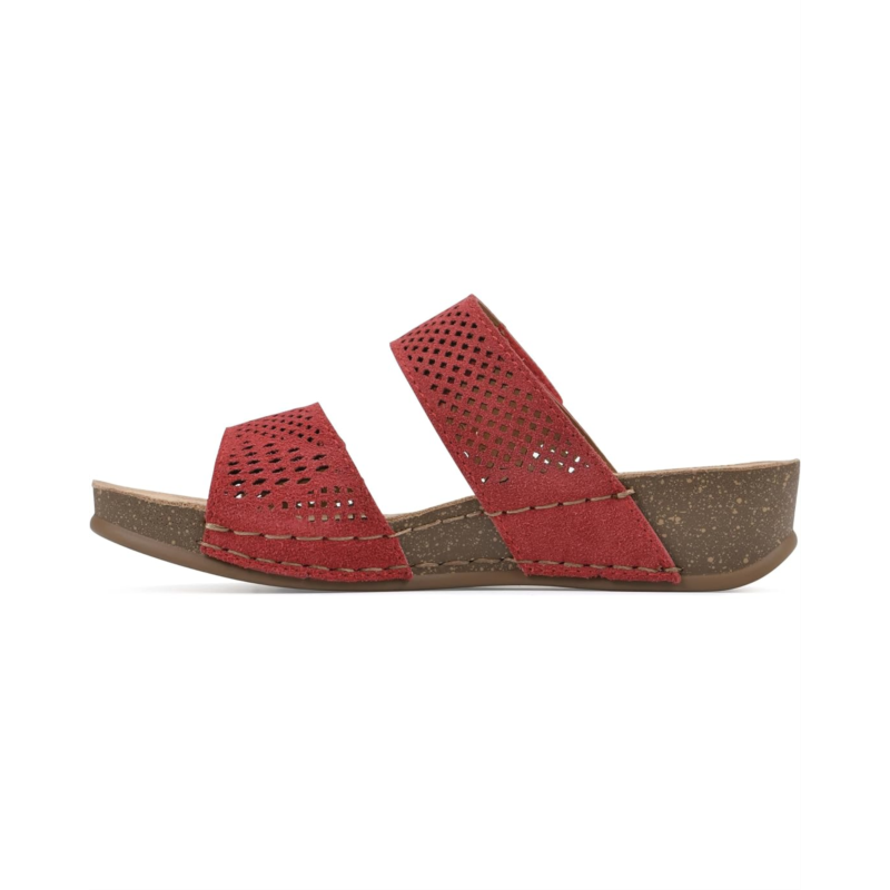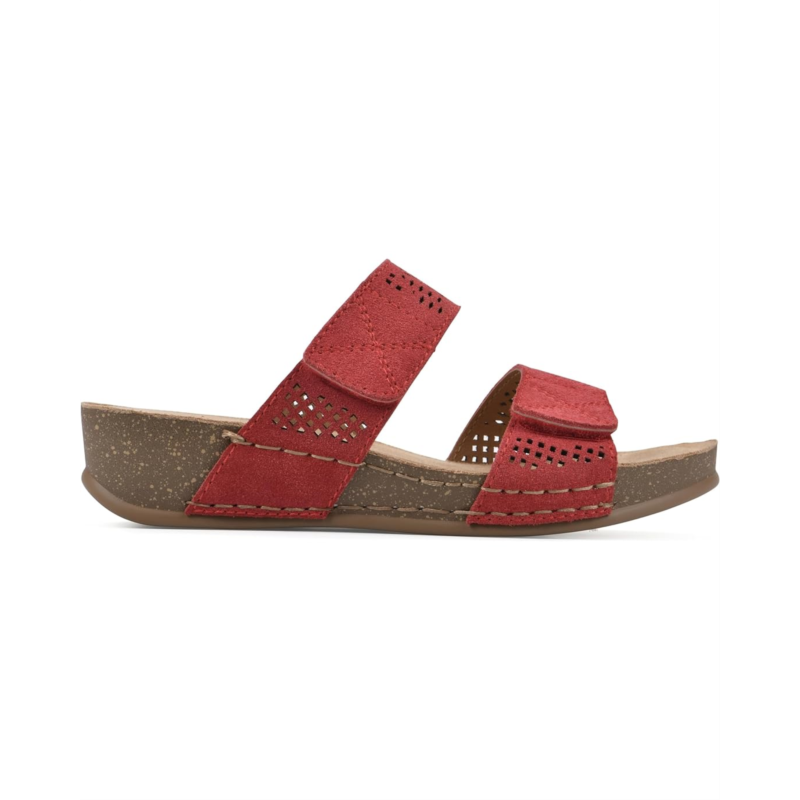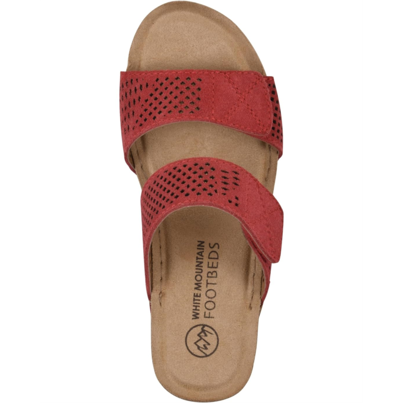 Make a statement in your spectacular fashion tempo wearing the White Mountain Ferula Sandals. The slip-on footwear features breathable leather upper straps with perforated design and low wedge heels.