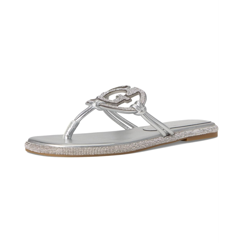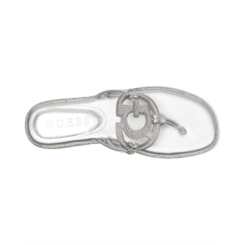 The sandal of the season has arrived, the GUESS Saima is here to shine. A cut out G logo embellished with all over rhinestones brings a luxe look to your everyday flat sandal. Est. 1981, guess is a global lifestyle brand and a symbol of a young, adventurous lifestyle. Crafted from PU upper, and man-made lining, this pair of flats features open round toe, and brand detailing on the footbed.