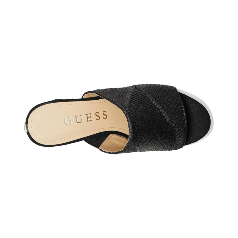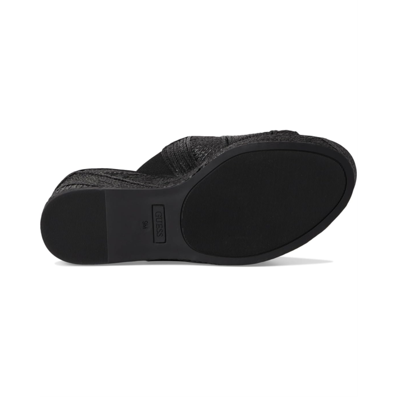 Take your style statement to new heights wearing the GUESS Evenz Sandals with appealing woven detailing throughout on a wedge heel. The slip-on style sandals feature a polyurethane upper, a polyurethane lining, and a comfortable insole.