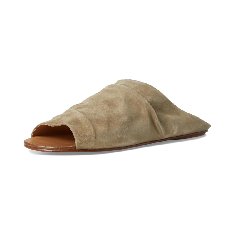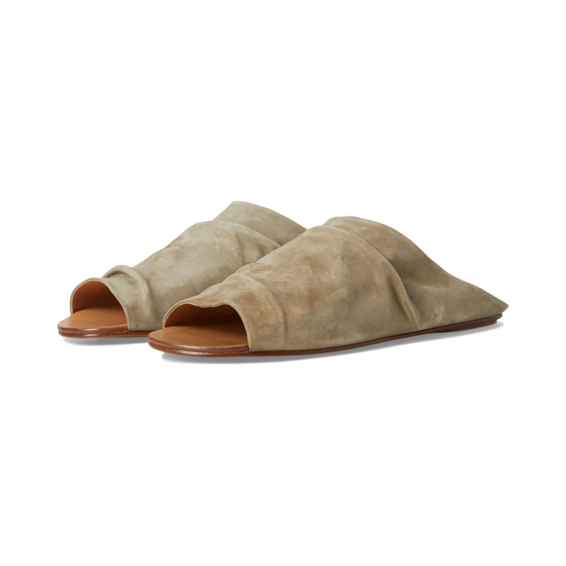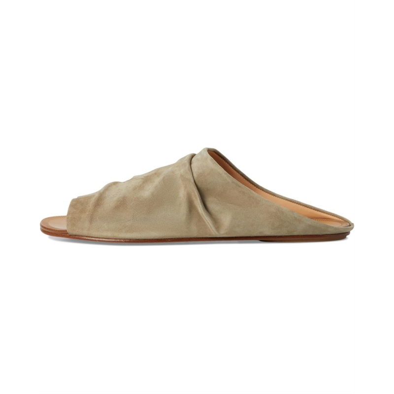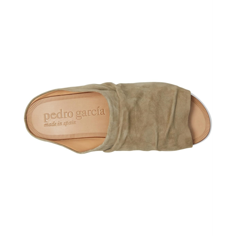 The Pedro Garcia Perfecta is a high vamp gathered mule in vegetable calfskin suede. This slip-on footwear is designed with breathable leather lining for all-day comfort.