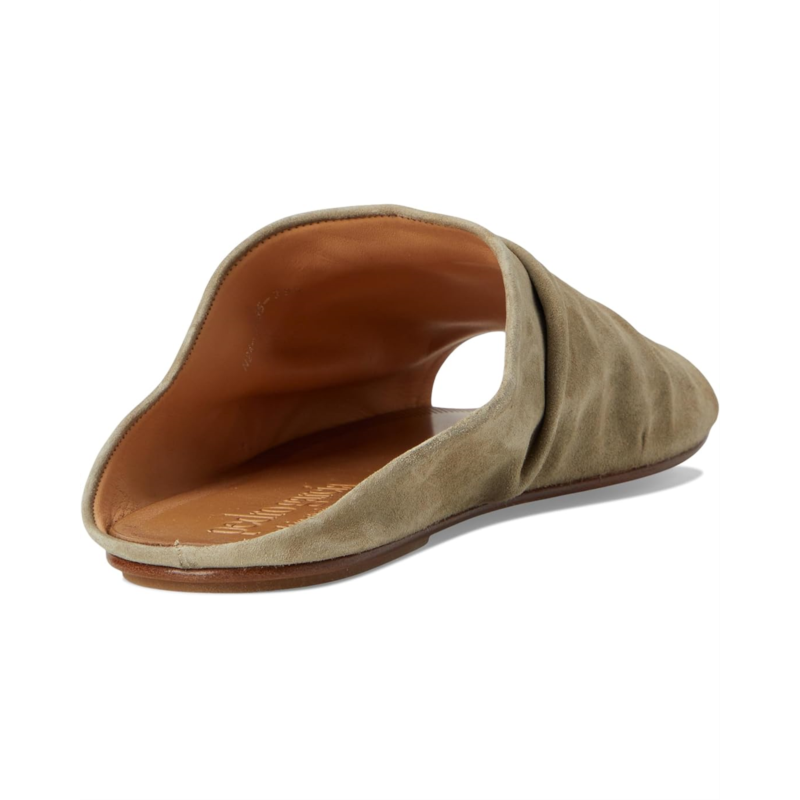 The Pedro Garcia Perfecta is a high vamp gathered mule in vegetable calfskin suede. This slip-on footwear is designed with breathable leather lining for all-day comfort.
