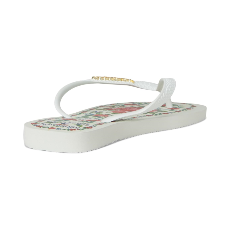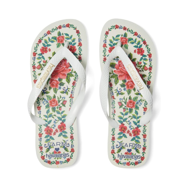 Enjoy you strolls through town or a relaxing walk in the garden wearing Havaianas Farm Flower Tapestry Sandals. The slip-on style sandals feature an allover floral tapestry printed rubber upper, synthetic rubber lining, and a rubber insole. These come in a thong style with an open round toe shape and a toe-post closure.