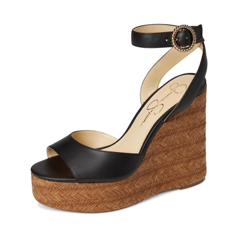 Rise above the ordinary in these Jessica Simpson Kamindi Espadrille Wedge sandals. Featuring a high wedge heel, the footwear boasts an adjustable buckle closure and open almond toe silhouette.