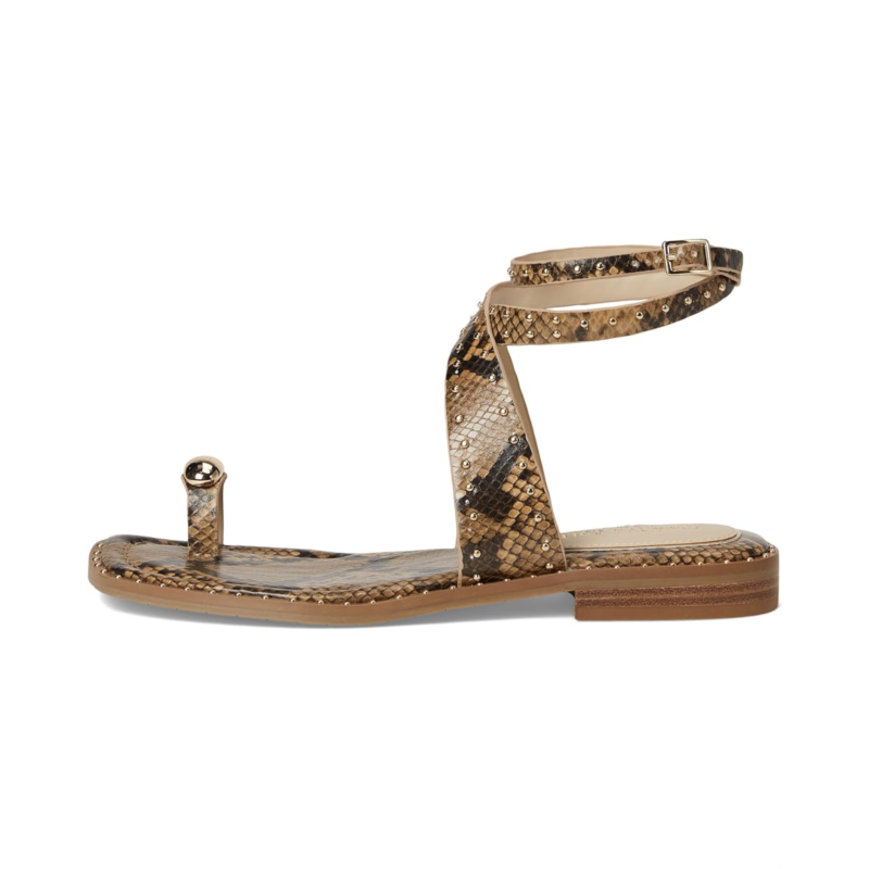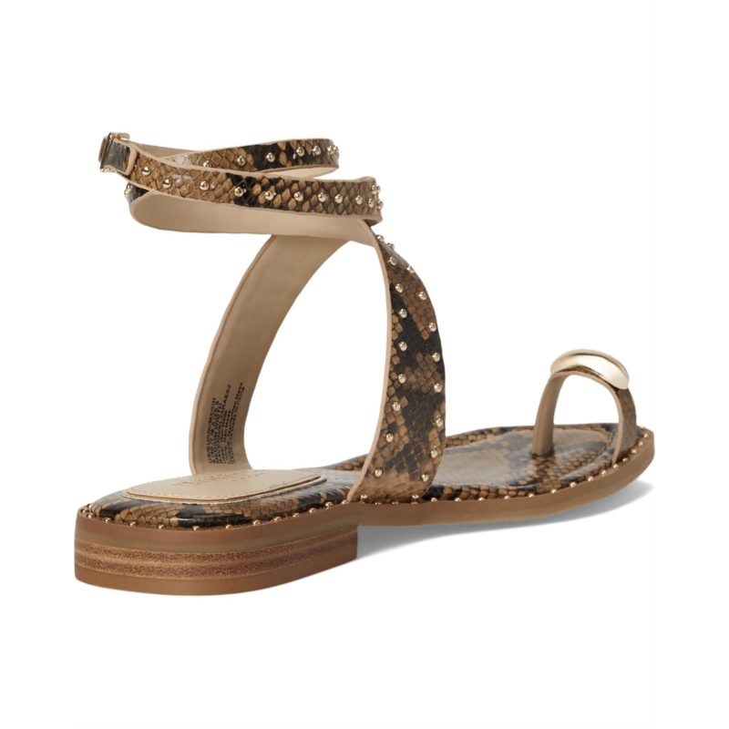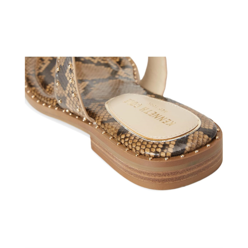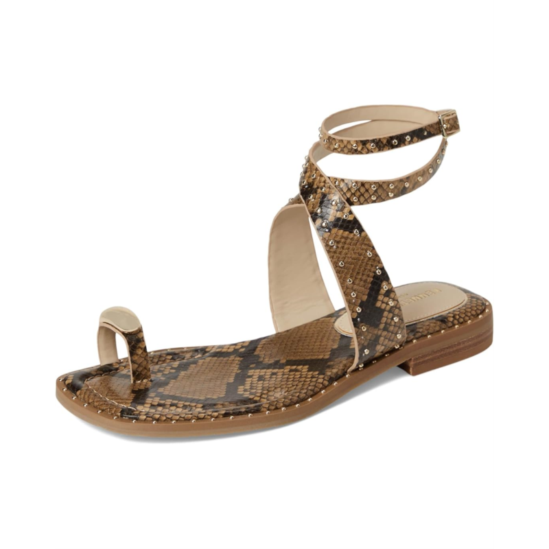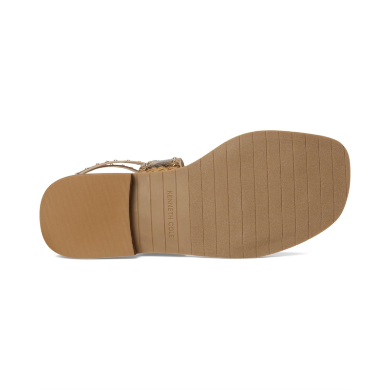 The Kenneth Cole New York Ravenn is a comfortable flat sandal with ankle wrap detail and toe thong. With an open square toe silhouette, the footwear features faux leather upper construction and adjustable buckle closure.