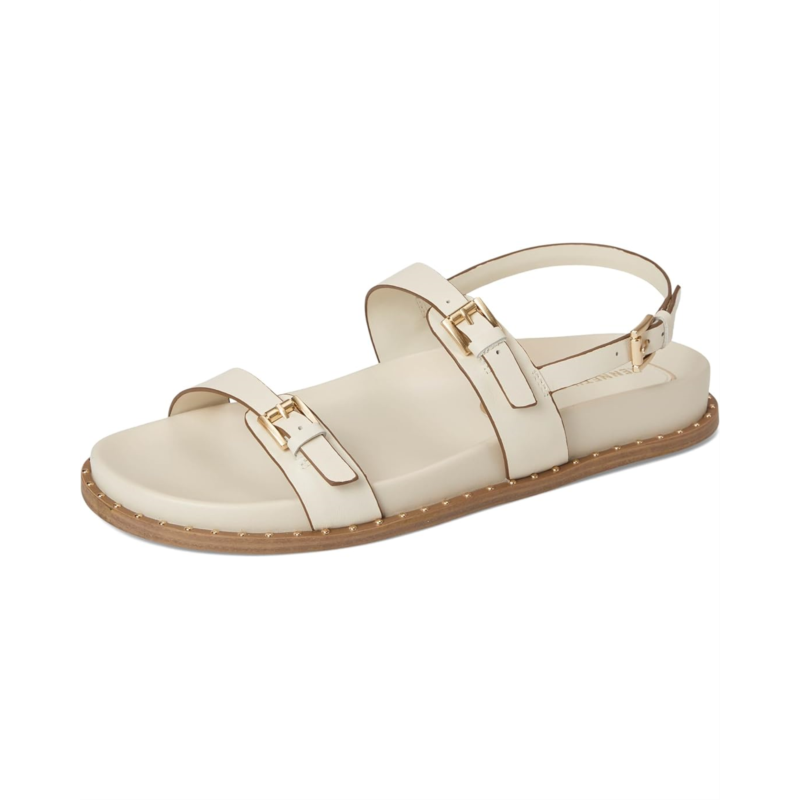 The Kenneth Cole New York Drinity is a comfortable two-band sandal with an adjustable backstrap that''s perfect for your everyday wear. The two buckle straps provide a secure fit, while the buckle adjustable backstrap ensures a custom, snug fit around your heel. The contoured faux leather footbed supports your arches and cushions your feet, making these sandals ideal for long walks.