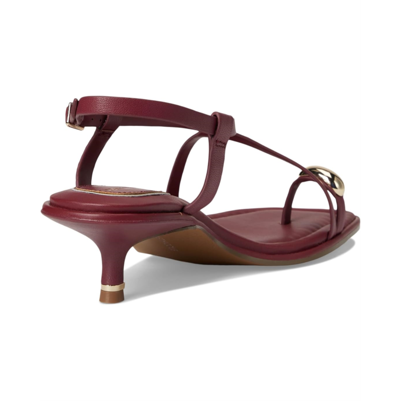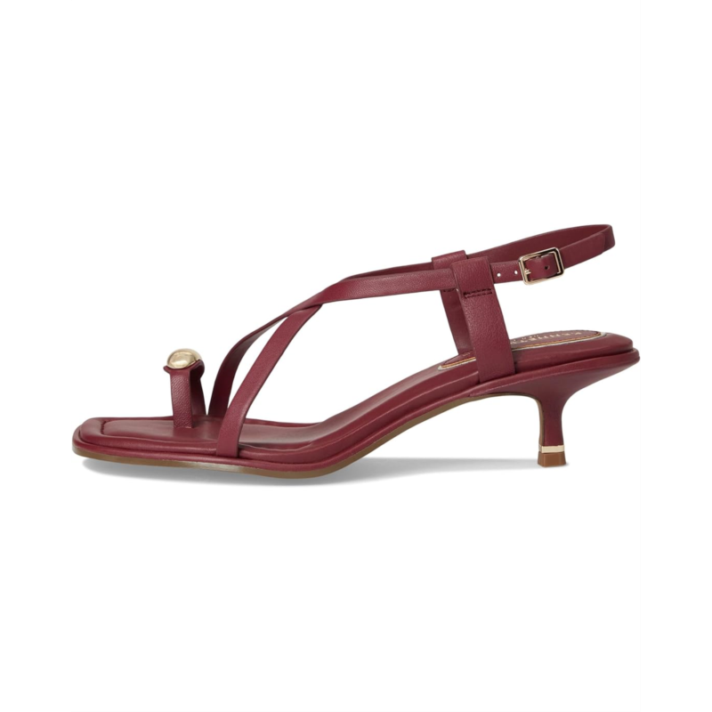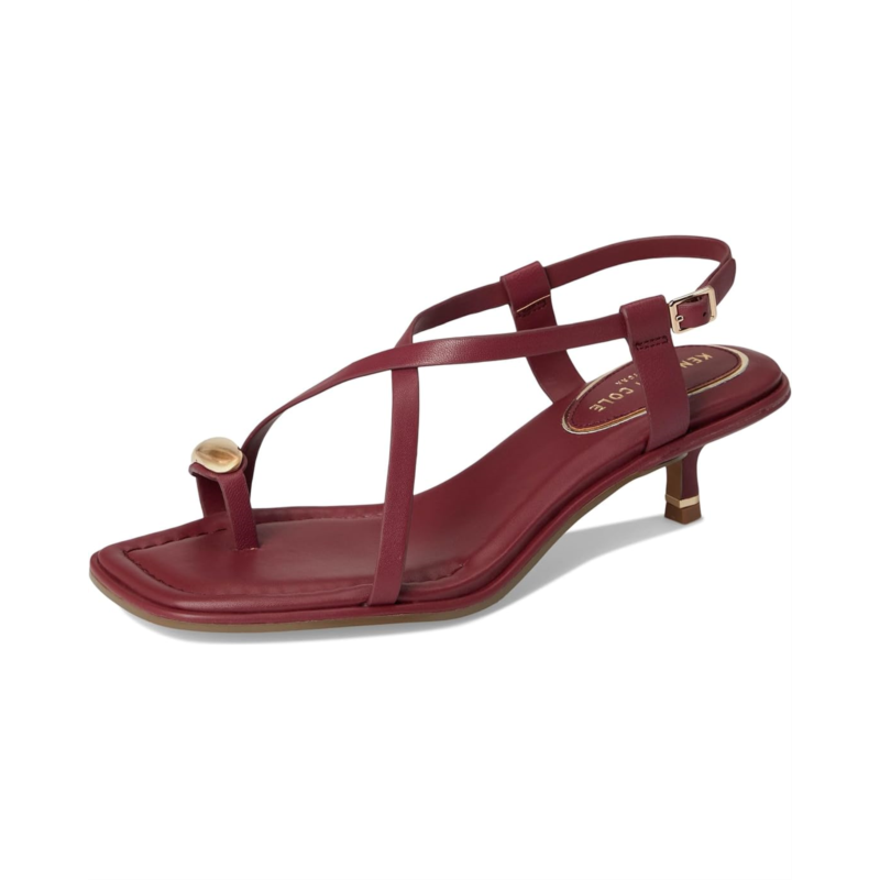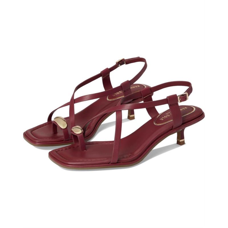 The Kenneth Cole New York Geala Sandals are the ideal combination of sophistication and modern charm. They provide both flair and comfort, including delicate strappy embellishments and a toe ring accent. The sleek kitten heel provides just the appropriate amount of lift, and the gold tone accent on the heel adds a delicate touch of luxury. The adjustable buckle closure guarantees a secure and customizable fit.