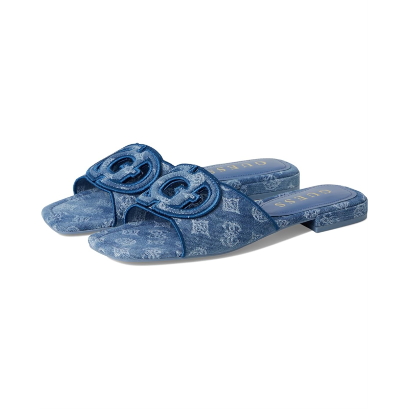Add an effortless chic appeal to your wardrobe wearing the GUESS Tarishae flats. This slip-on footwear features a signature embossed upper strap with polyurethane construction.