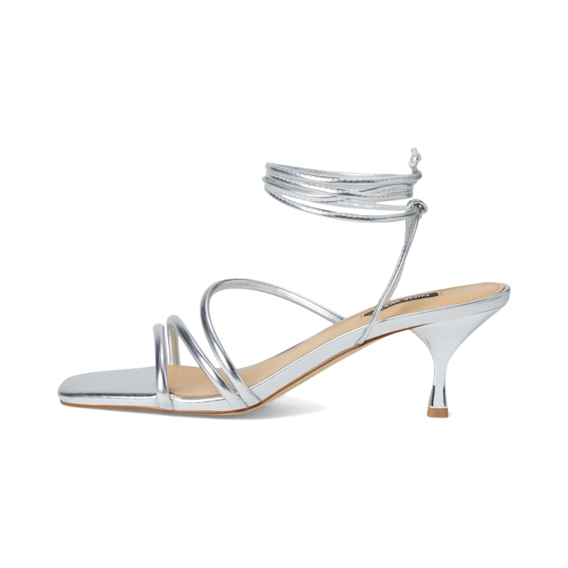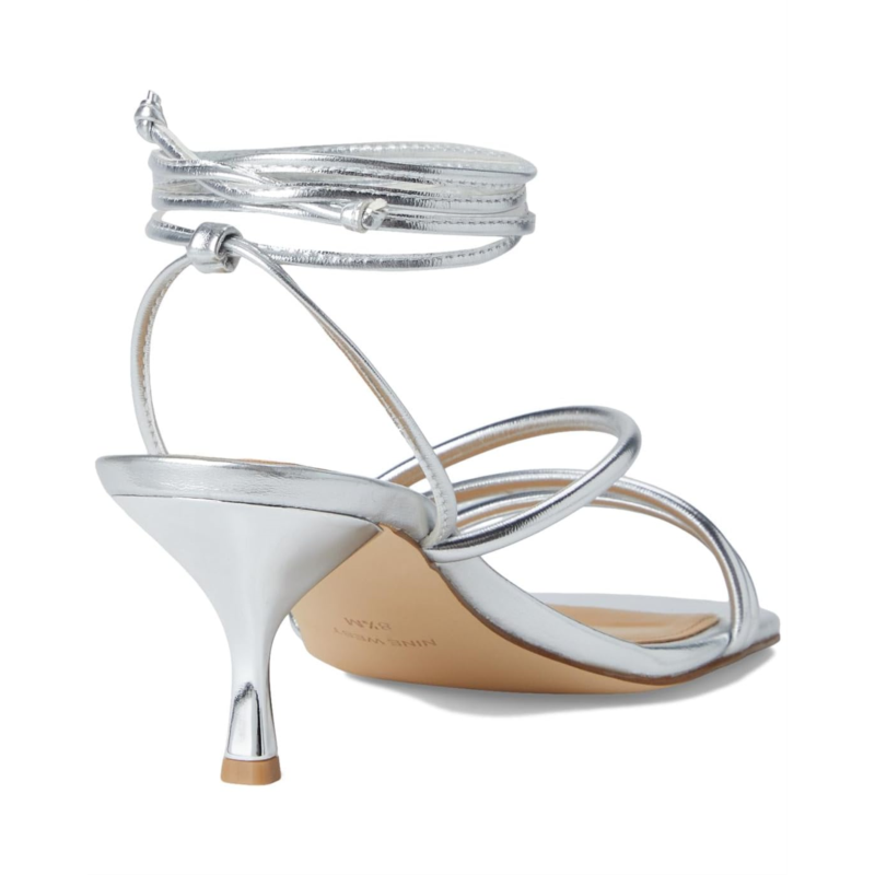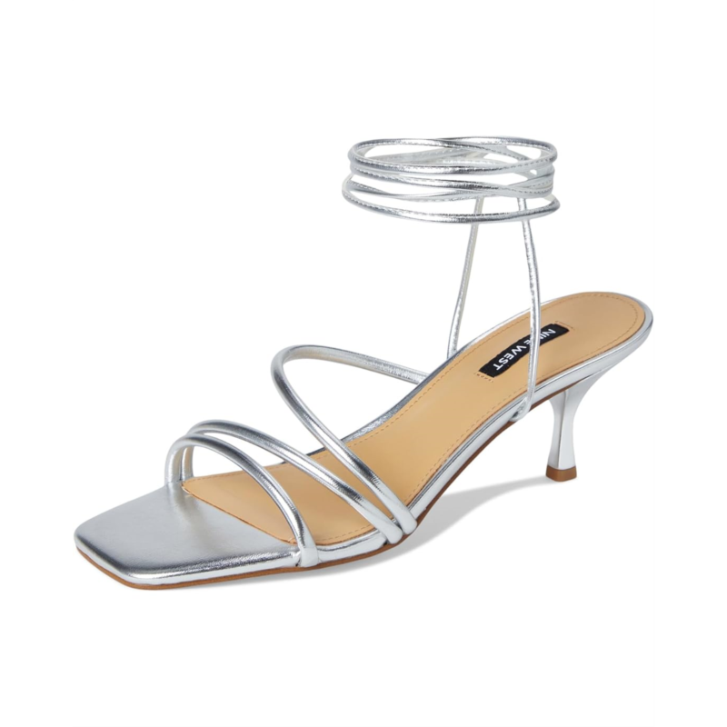 A legacy of style, reimagined wearing Nine West These chic dress sandals feature a luxe faux leather upper and a strappy silhouette that hugs your feet with style. The trendy square toe and delicate tie closure at the ankle create a sophisticated yet playful look, while the tapered kitten heel adds just the right amount of lift for all-day comfort. Designed for versatility, the Hendy is your go-to for everything from power meetings to evening soirees.