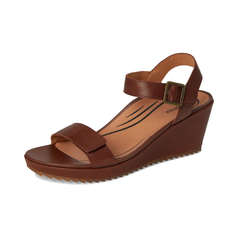 Step into the season style with the Aetrex Andrea Sandals, designed with adjustable quarter straps and hook-and-loop closures for a snug and customized fit. The leather-wrapped wedge heel and foam footbed offer a blend of elegance, durability, and comfort. These feature a leather upper and a faux suede lining. The Aetrex Orthotic System is Built-In to every pair features arch support that helps to stabilize your body, align your feet and relieve common foot painFeaturing Aetrex Arch Support, the Andrea seamlessly combines practicality and fashion, perfect for any sunny-day outings.