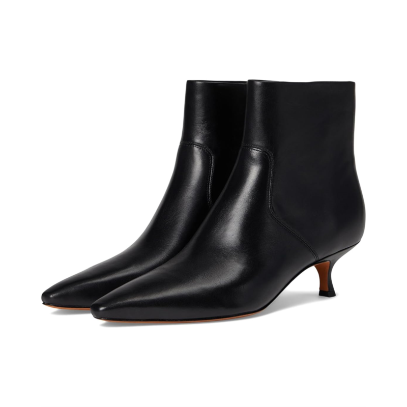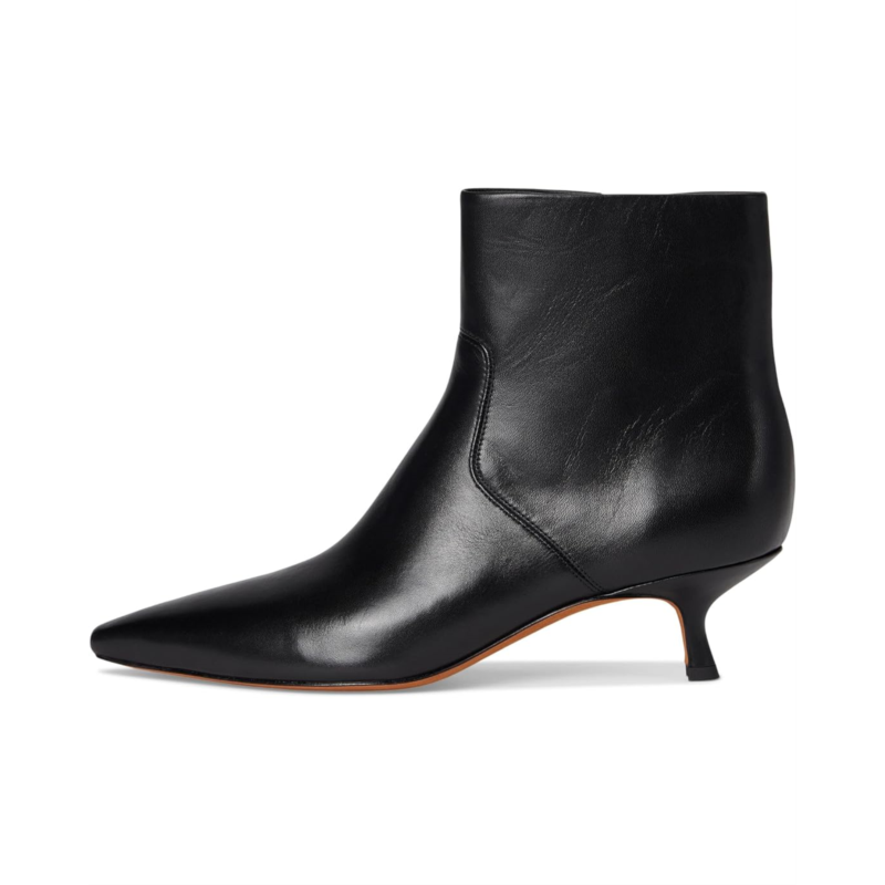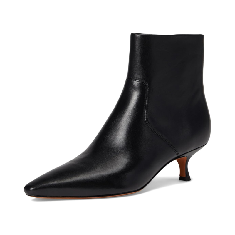 Pared-back and clean, the versatile Vince Simone Zip Short Boots are finished with a pointed toe shape and architectural kitten heel. The ankle-high boots are crafted with a leather upper and lining responsibly sourced from Leather Working Group certified tanneries.