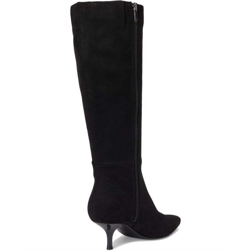 Dress to impress in the Nine West Havier boots. Featuring a tall shaft, tapered kitten heels, and a modern square toe silhouette, these knee-high boots will never go out of style and are the perfect wardrobe staple. They are made of a faux suede upper, cushioned footbed, and fabric lining. The zippered side closure ensures easy on and off.