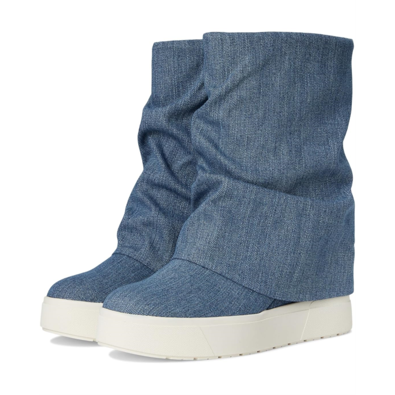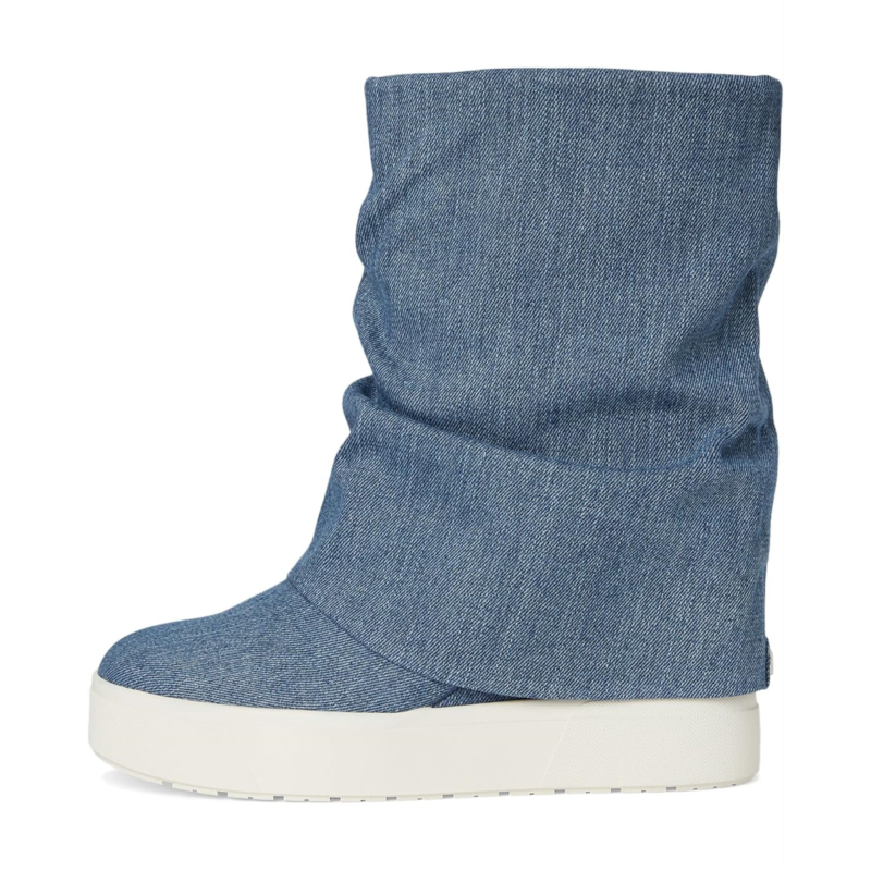 Meet the must-have style of the season, the GUESS Guinna boots. Where a sneaker meets a boot, the foldover slouchy silhouette is great for an everyday put-together look. The denim upper of these boots features a pull-on style. These ankle-high boots are made of a cushioned insole and fabric lining, making them comfortable to wear for long hours.