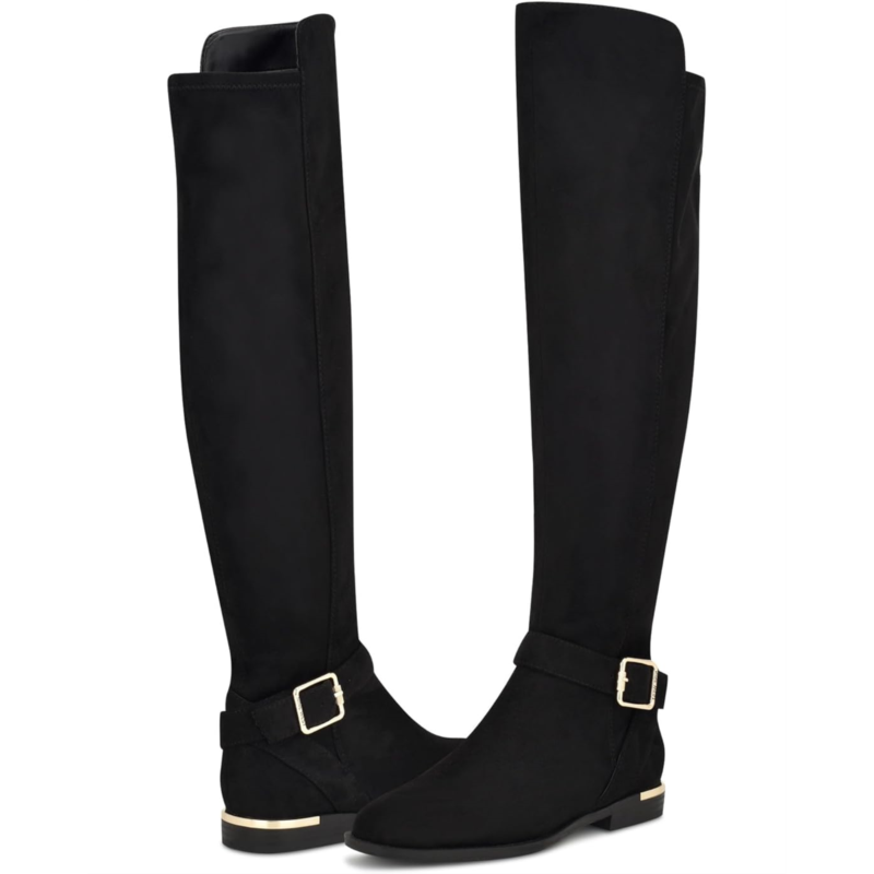 A statement piece designed to turn heads, the Nine West Andone over-the-knee boots boast a sleek and dramatic silhouette that effortlessly complements your fashionable choices. The round toe adds a touch of comfort to the chic design, making them suitable for all-day wear. With a flat heel for stability and an eye-catching buckle embellishment, these boots are the perfect blend of timeless elegance and class.