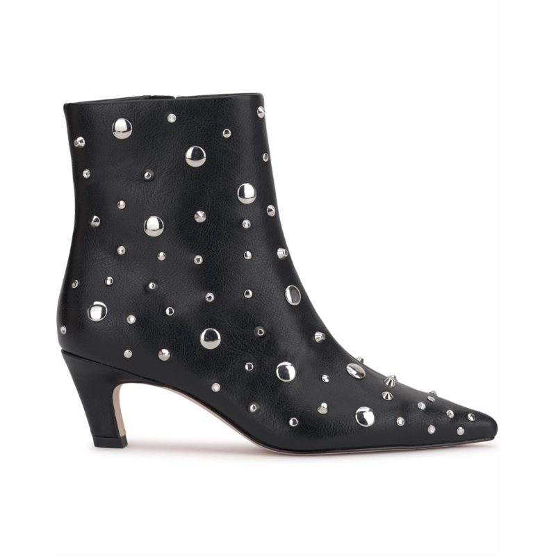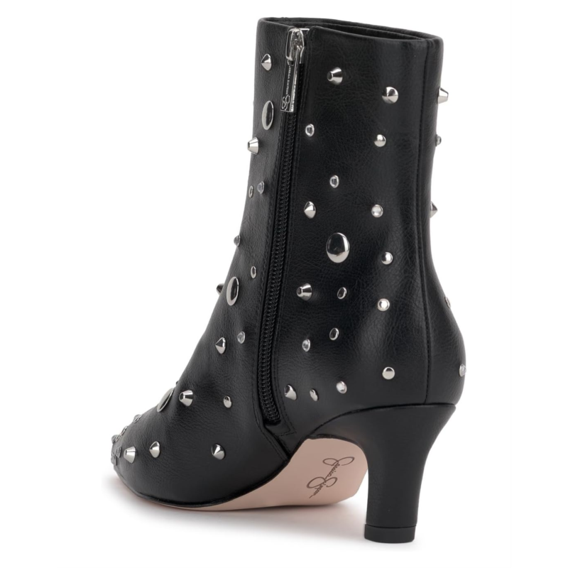 The Jessica Simpson Viviana Kitten Heel Studded Bootie has the added detail you expect from the brand with stud details allover. Featuring a sleek snip toe silhouette, the ankle-high footwear has a low kitten heel and side zipper for easy entry.