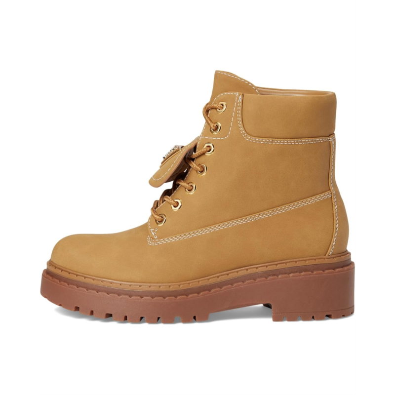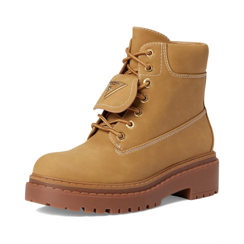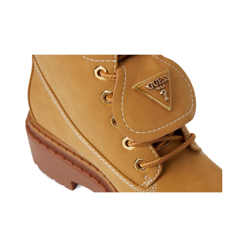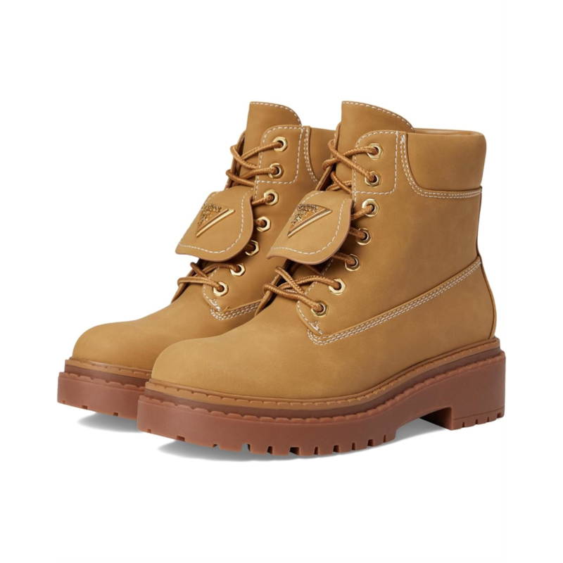 The GUESS Leavey boots bring a rugged vibe to a classic Guess combat silhouette. With a trendy chunky rubber outsole, these lace-up boots feature the signature Guess triangle, giving them an elevated casual boot style. They are made of a cushioned insole and synthetic rubber lining. The rubber upper is styled with a flap at the front. These ankle boots are perfect for styling up your looks and outfits.