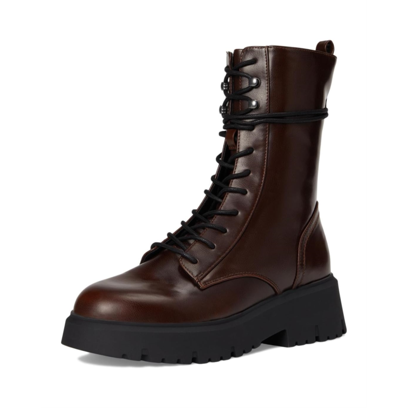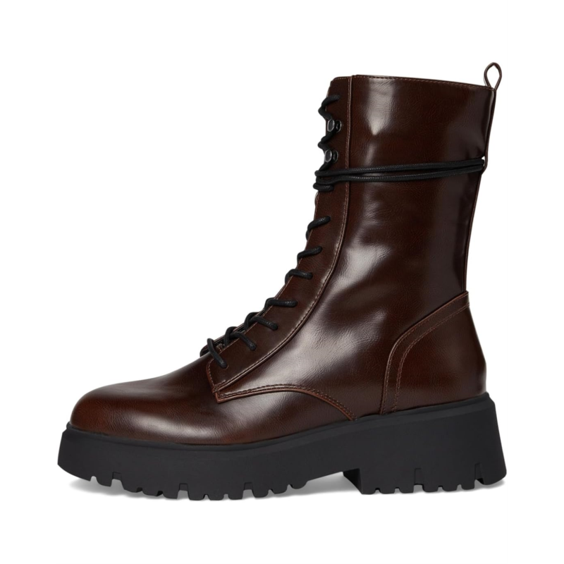 The Madden Girl Maisey combat boot is cool girl approved with its lug sole. Crafted from a faux leather upper, these boots offer a lace-up closure in a round toe silhouette, side zipper, faux leather lining, and a faux leather insole.