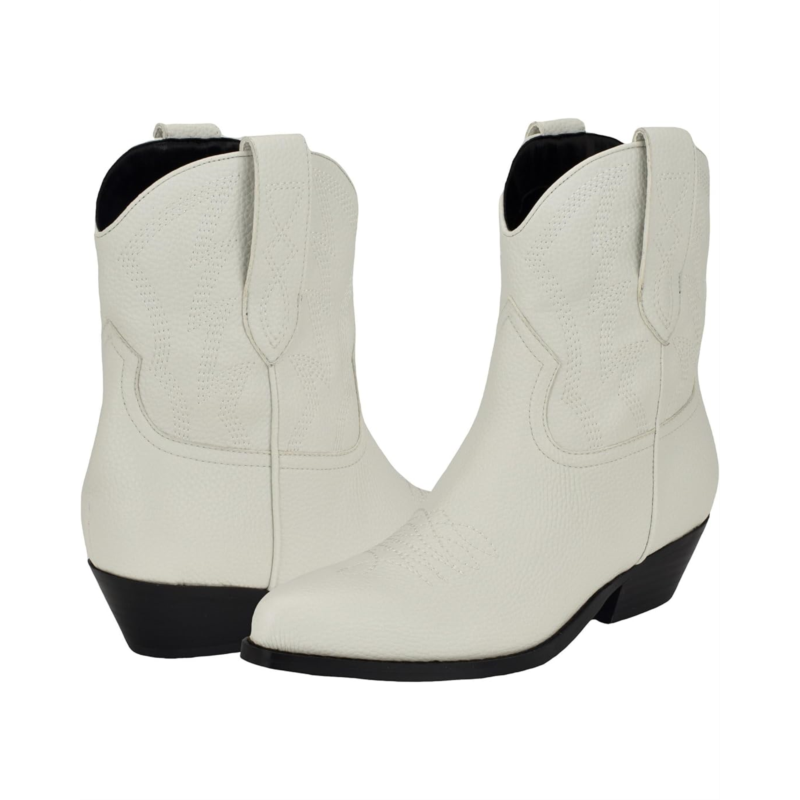 Style up your outfits and looks wearing the GUESS Ginette boots. The denim upper of these boots features tonal stitching patterns that offer a chic look. These fashionable boots come with a padded footbed and fabric lining that keep your feet comfortable all day. The pull loops at the side make them easy to slip on and off. Add a fashion-forward look to your everyday looks and casual styles wearing these heeled boots.