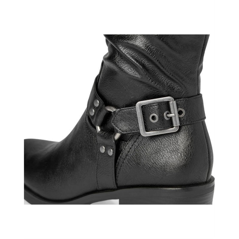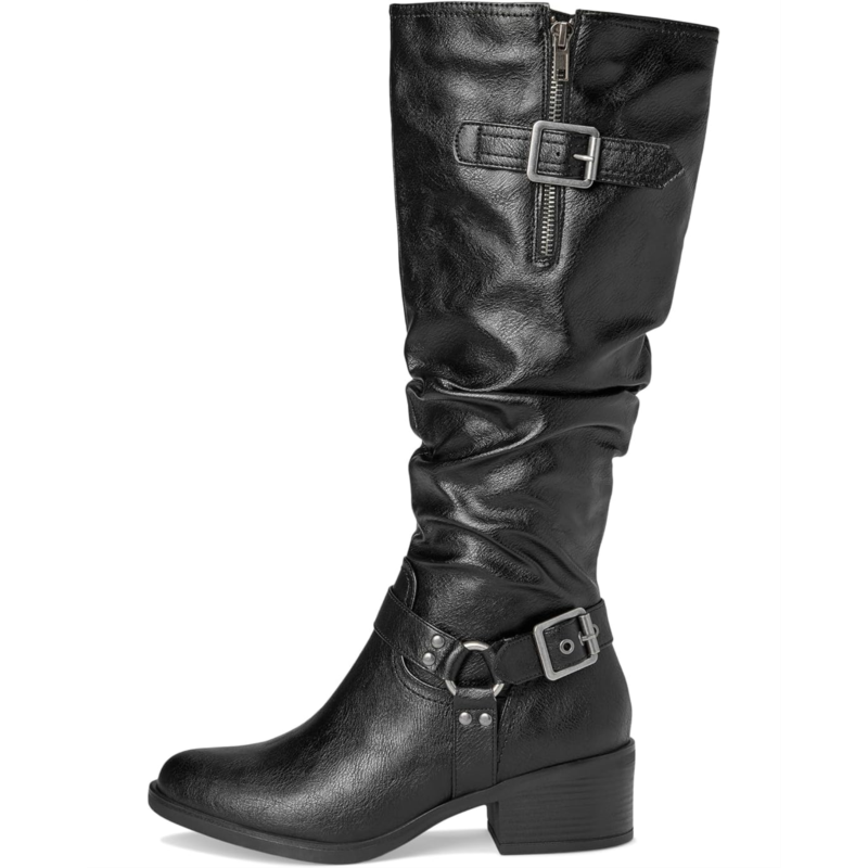 Saddle up for style and sophistication with the cushion tall shaft boot from White Mountain shoes. The western inspired harness buckle and strap give it a unique look to a classic riding boot. The top buckle isn''t just for looks; it is adjustable to give you a wider shaft if needed.