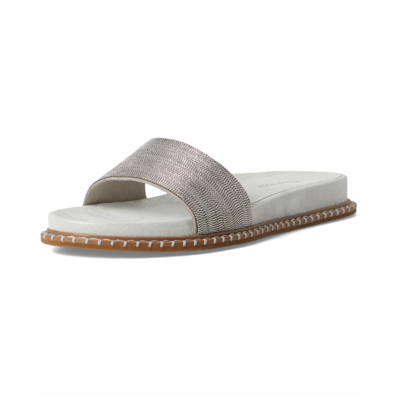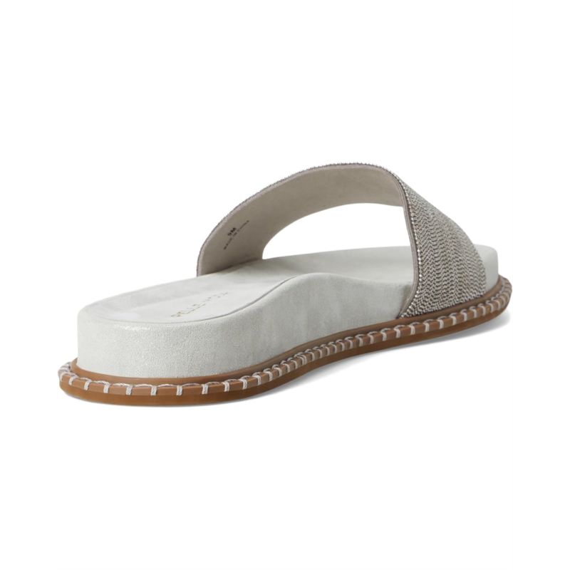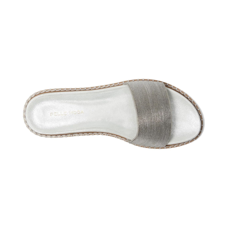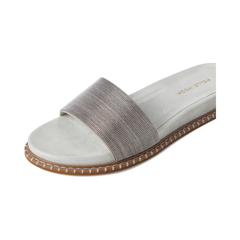 The Pelle Moda Nyra slide is beautifully embellished with small stones to elevate the look. A flexible leather footbed is designed with a stitched rubber outsole for added flexibility.
