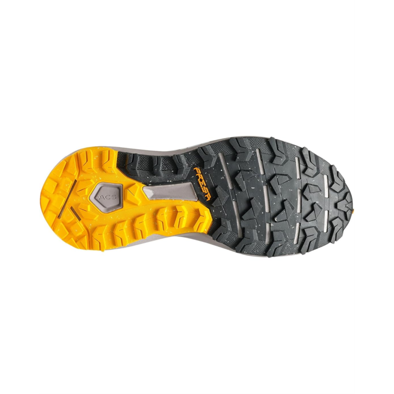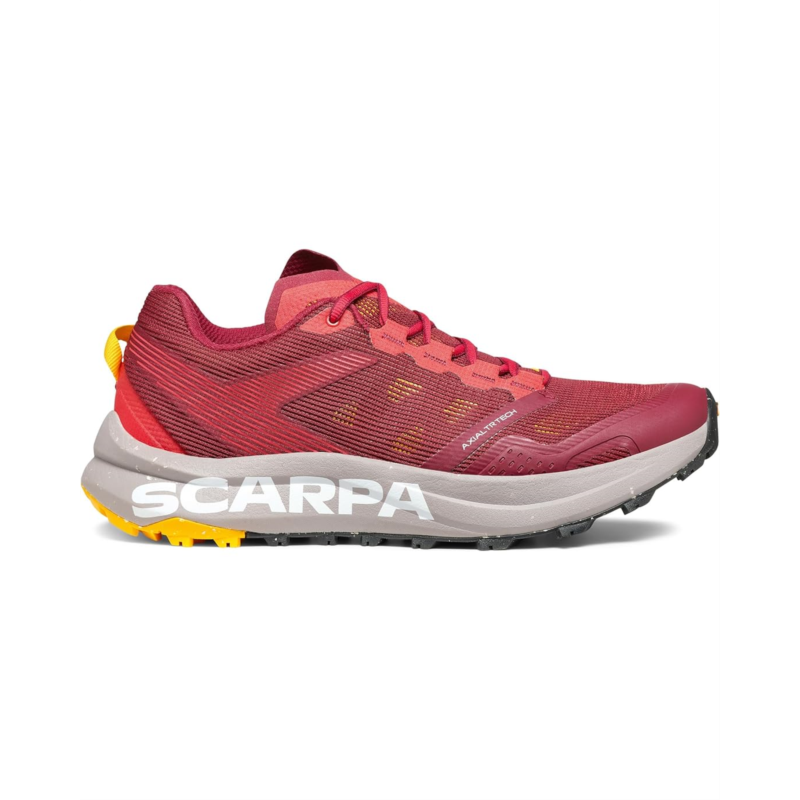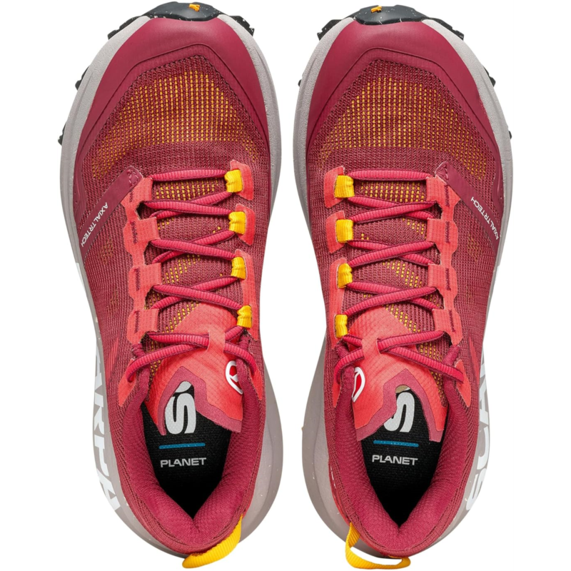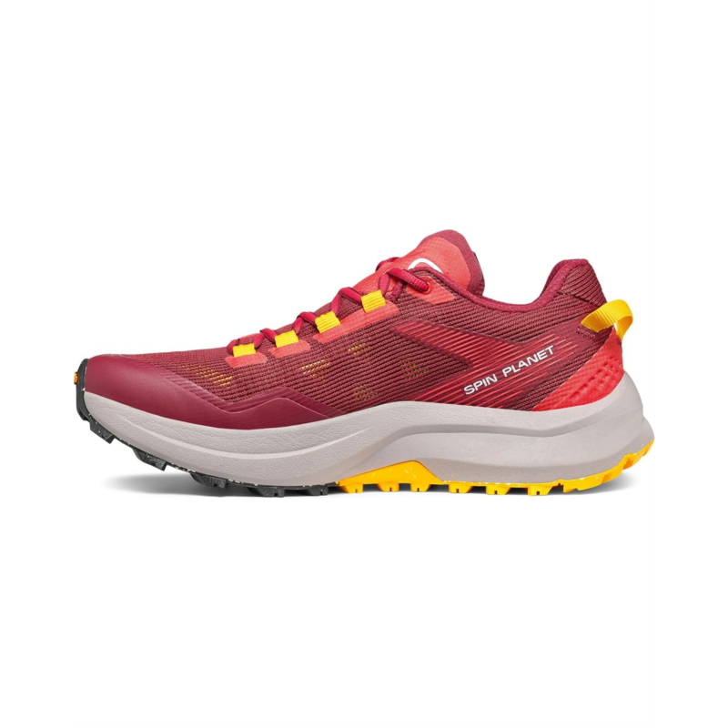 Reach new heights wearing the fashionable Scarpa Spin Planet. Crafted from synthetic mesh upper, recycled microfiber lining, and strobel footbed, this pair of running shoes features round toe, lace-up closure, heat-sealed side protection, and brand detailing on the sides, footbed, and tongue.