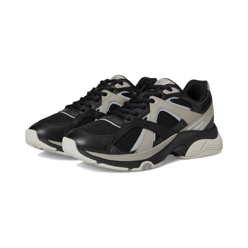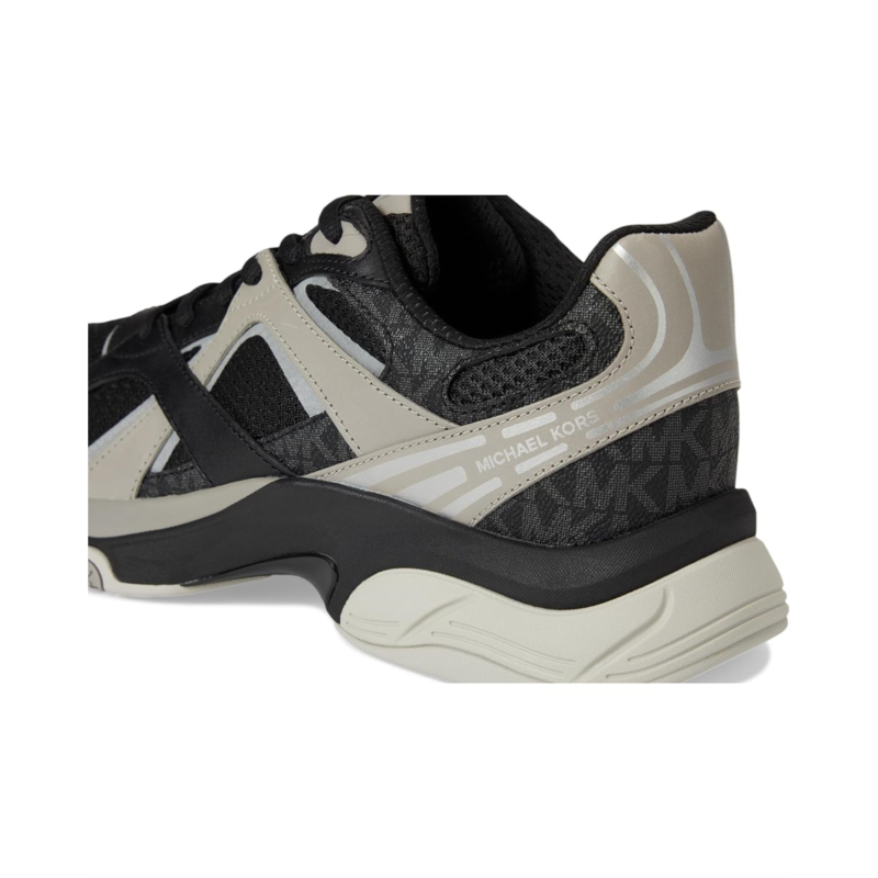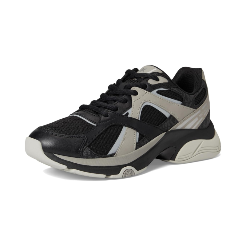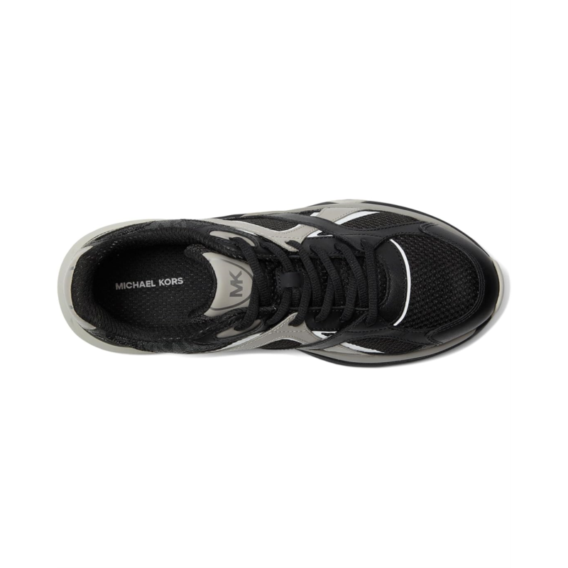 The Michael Kors Leo Trainer is a modern and dynamic design perfect for material and color mixing. Featuring intricate multi-layered design and high quality material fabrications. Crafted from nylon upper, polyester lining, and EVA insole, this pair of shoes features round toe, lace-up closure, MK empire signature logo paneling, and lightweight construction.