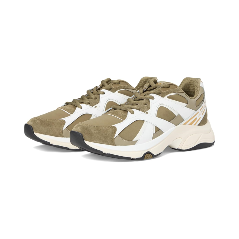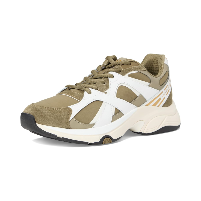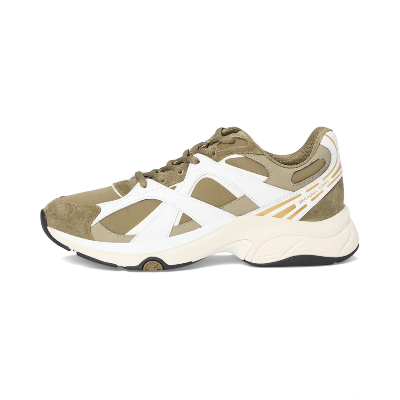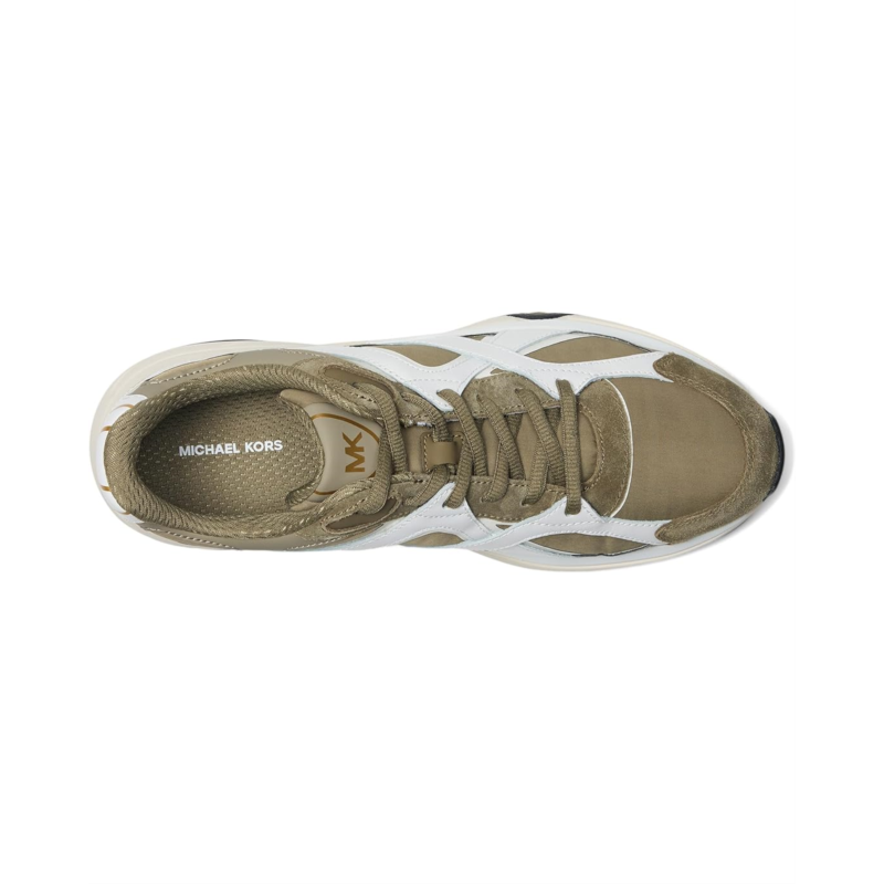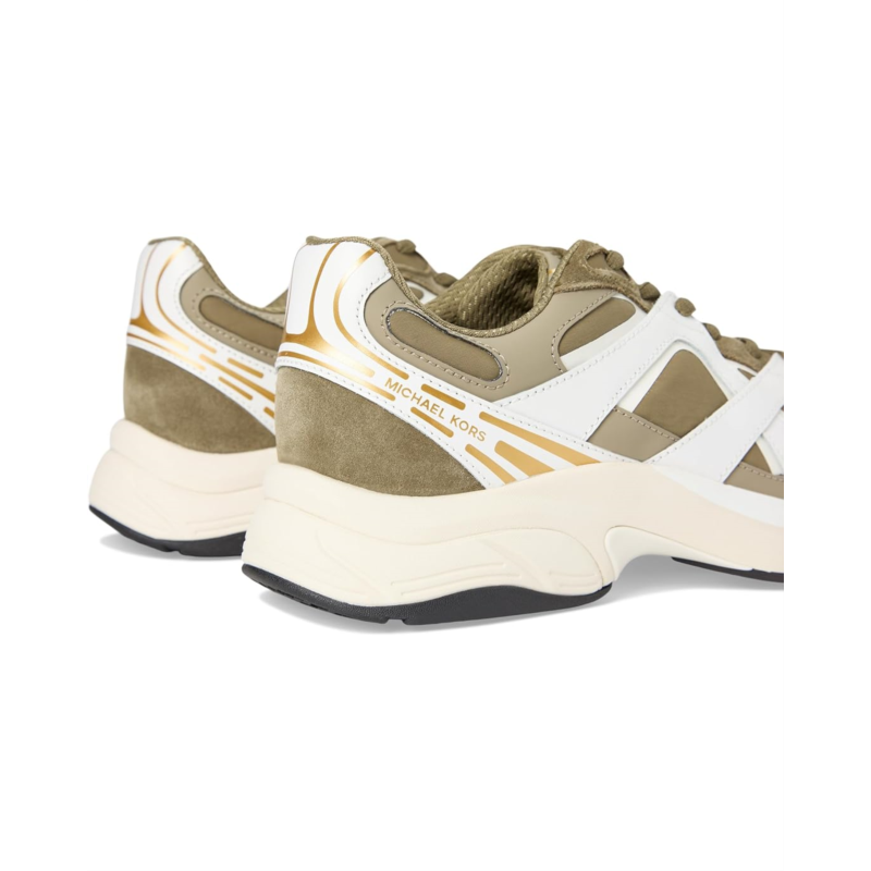 The Michael Kors Leo Trainer is a modern and dynamic design perfect for material and color mixing. Featuring intricate multi-layered design and high quality material fabrications. Crafted from nylon upper, polyester lining, and EVA insole, this pair of shoes features round toe, lace-up closure, MK empire signature logo paneling, and lightweight construction.