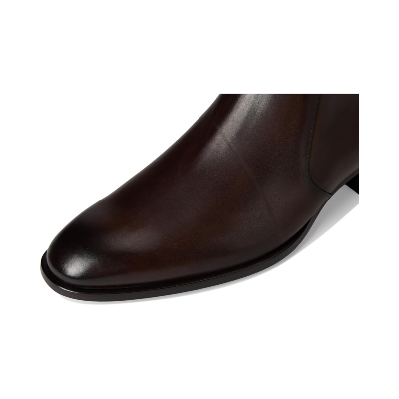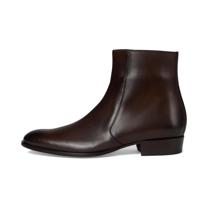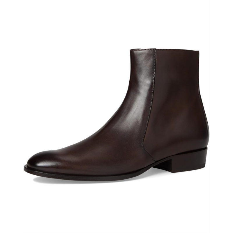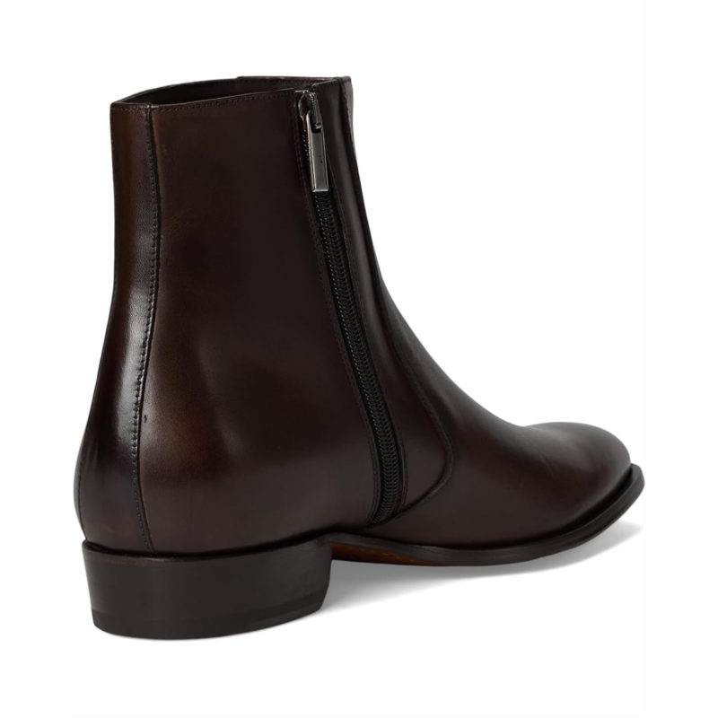 - Dress side zip boot with full leather sole and stacked leather heel. Constructed from a leather upper, these Chelsea boots offer a round toe silhouette, leather lining and insole and a block heel.