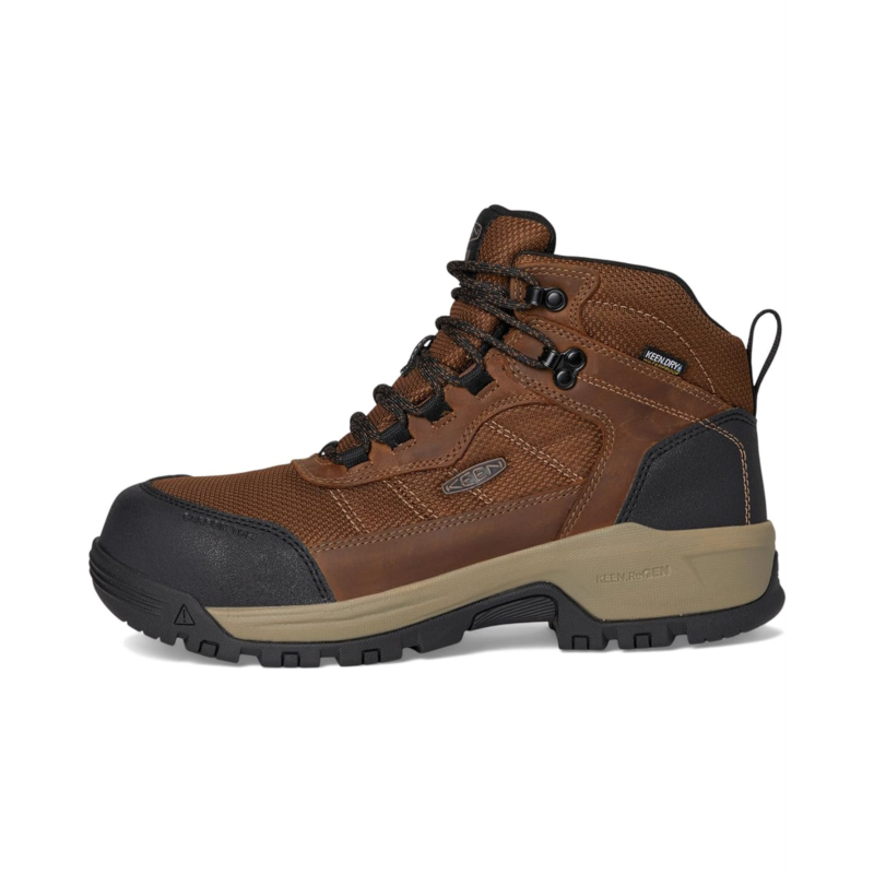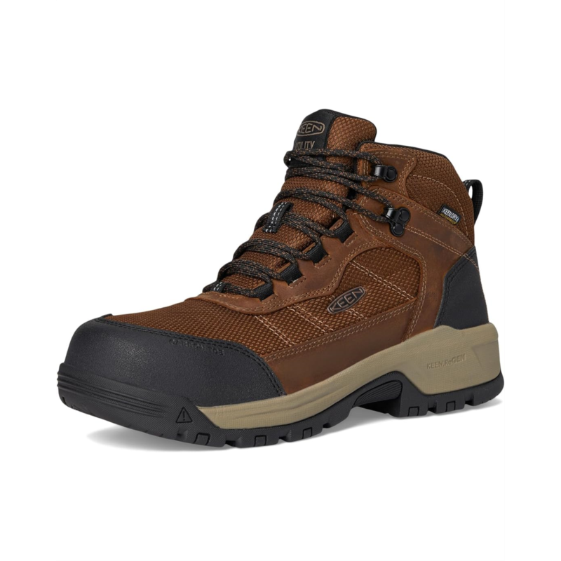 - Protects like a work boot, feels like a sneaker. This versatile, waterproof work hiker style features a tough upper and energy-returning cushioning. Featuring durable, environmentally preferred leather and safety features that dont quit, such as a 90-degree heel for added stability on ladders. KEEN Utility Skokie Waterproof Work Boot (Carbon Toe) for men is built off KEENs Original Fit, giving extra room for toes to spread out and extra support. KEEN Utility products offer removable insoles. These dependable work boots are great for medium-duty work in roofing, construction, utilities, landscaping, maintenance, and energy. KEEN Utility sources all leather from tanneries certified by the Leather Working Group (LWG), which reduces water and energy use. At KEEN Utility, we believe in creating work boots that make your work and your life better. That means delivering the kind of safety, comfort, and performance that contributes to living a richer, fuller, multidimensional life - on the job and off.