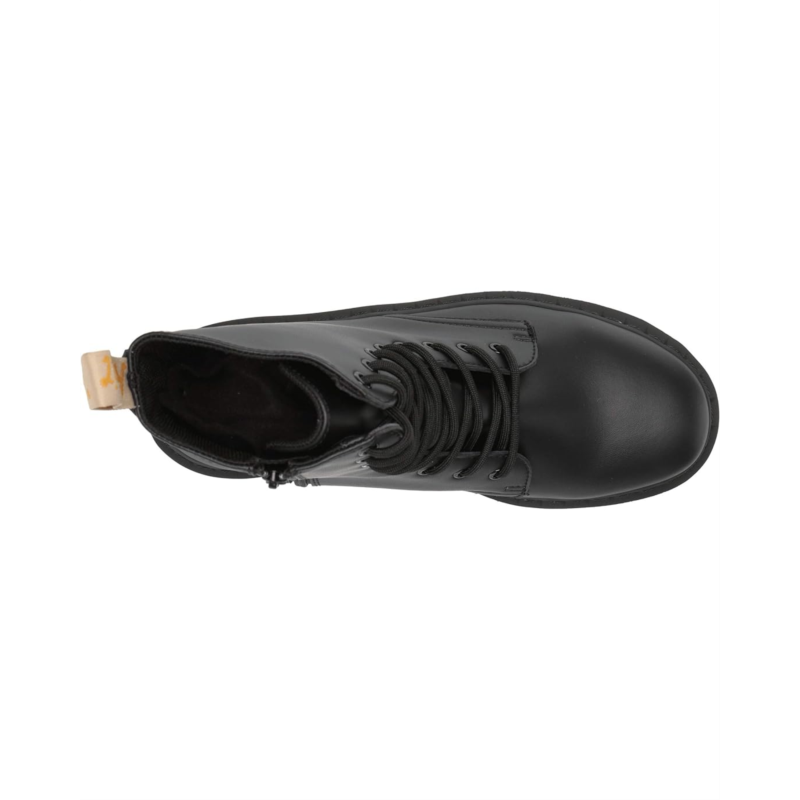 - Eight-eyelet lace-up boot with sturdy fabric laces for a secure fit.
