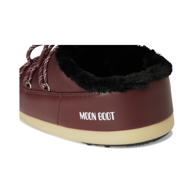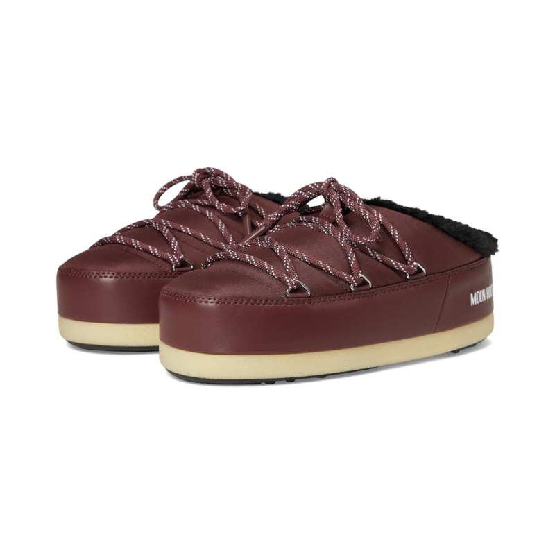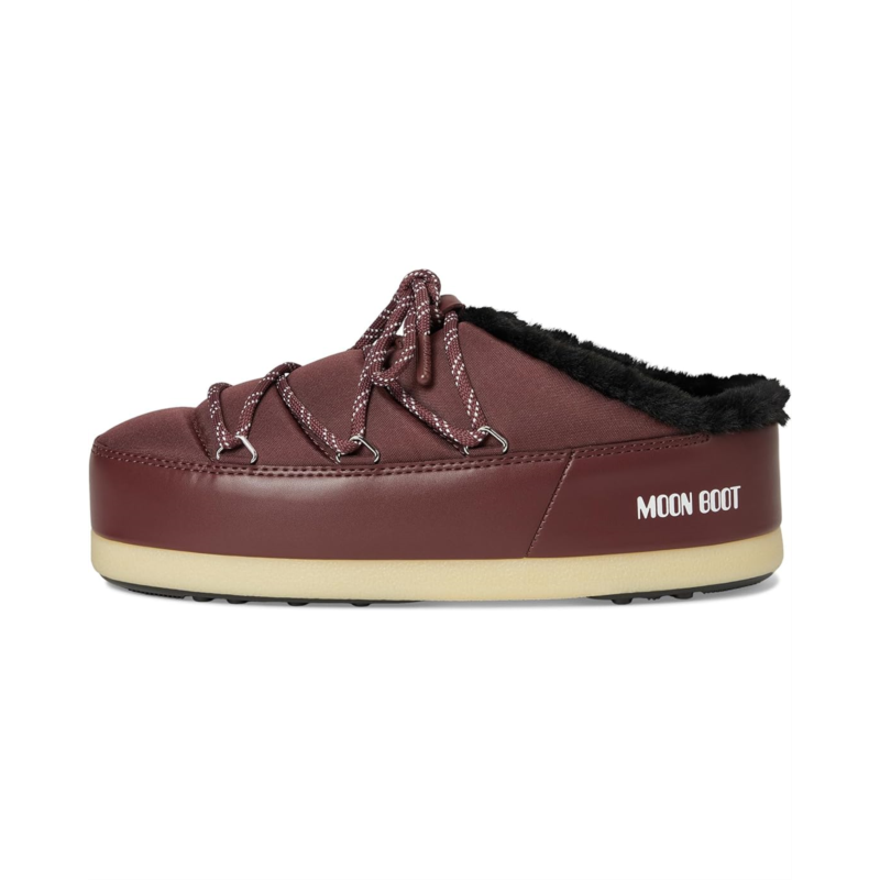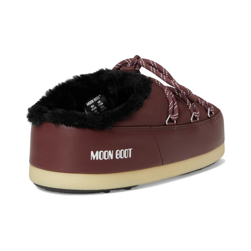 - The MOON BOOT Evx Myle Nylon mules riff on the original Moon Boot, inspired by the 1969 lunar landing. Reworked to a low, slip-on design, these low-top shoes are primed for city streets. They are crafted from water-repellent nylon with a lightweight midsole and suction pads on the rubber tread outsole to keep things grounded. Featuring a gender-neutral design, these lace-up mules are made of a polyester insole and lining for added comfort.