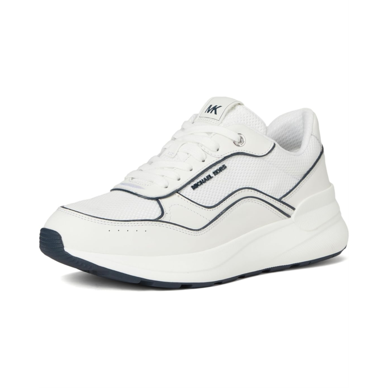 Own your stride, conquer your day styling Michael Kors Trevor Trainer. Featuring a sleek leather upper and a supportive polyester lining, these sneakers are designed for ultimate comfort. The rubber insole and outsole ensure durability and traction, while the Eco-Comfort Sock Liner offers unparalleled cushioning for all-day wear. The branded sport heel rand adds a touch of sophistication, making these lace-up sneakers a must-have for any wardrobe.